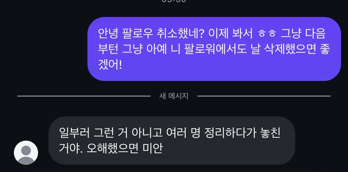 여러 명 정리하다가 놓친 거다 -> 팔로워에서도 삭제하려했는데 놓쳤다 -> 걍 언니 팔취한 거 이게 맞는 거 같은데