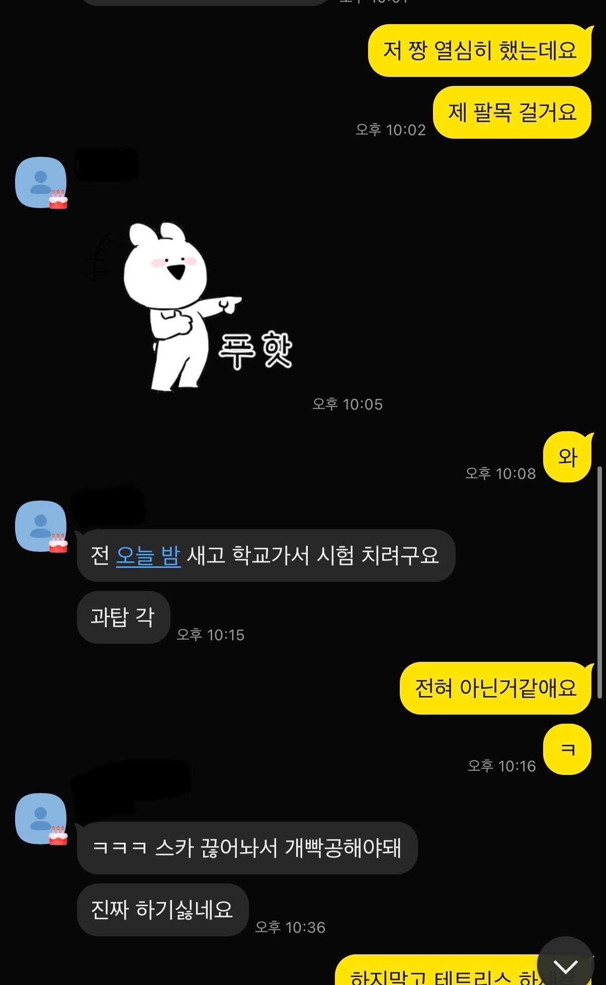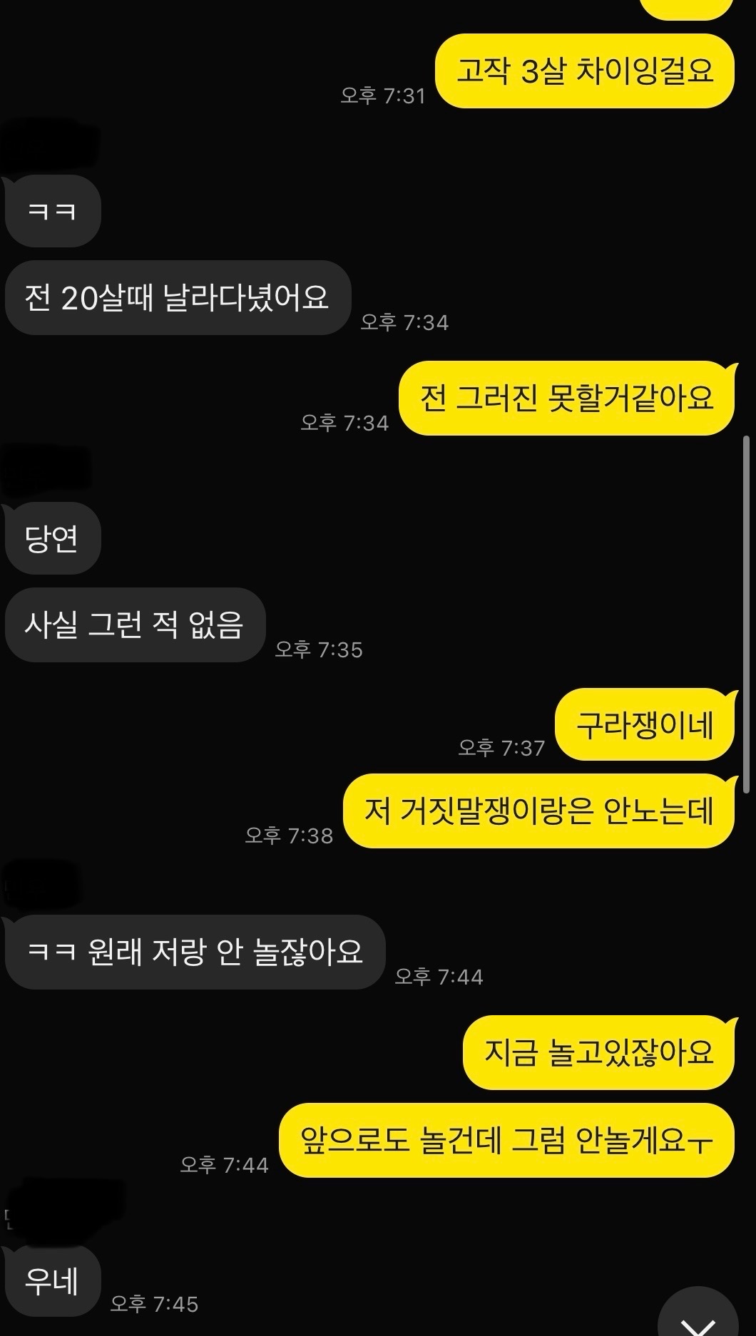 @빠른언니2 꼭 계속 말을 이어나가야하는건 아니잖아 친구끼리도 안그러는데 할말있음 또 오겠징~