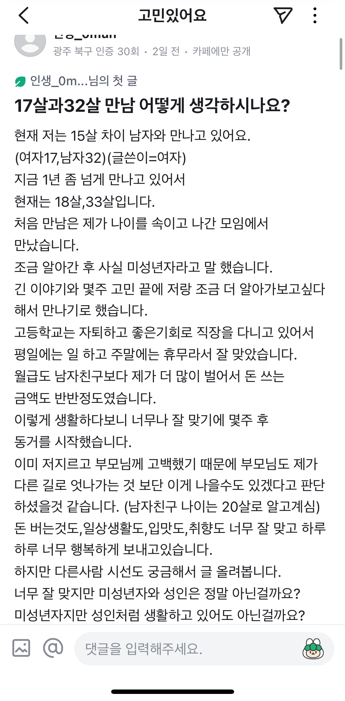 30대가 17살 만나는것도 능력이라해? - 속닥