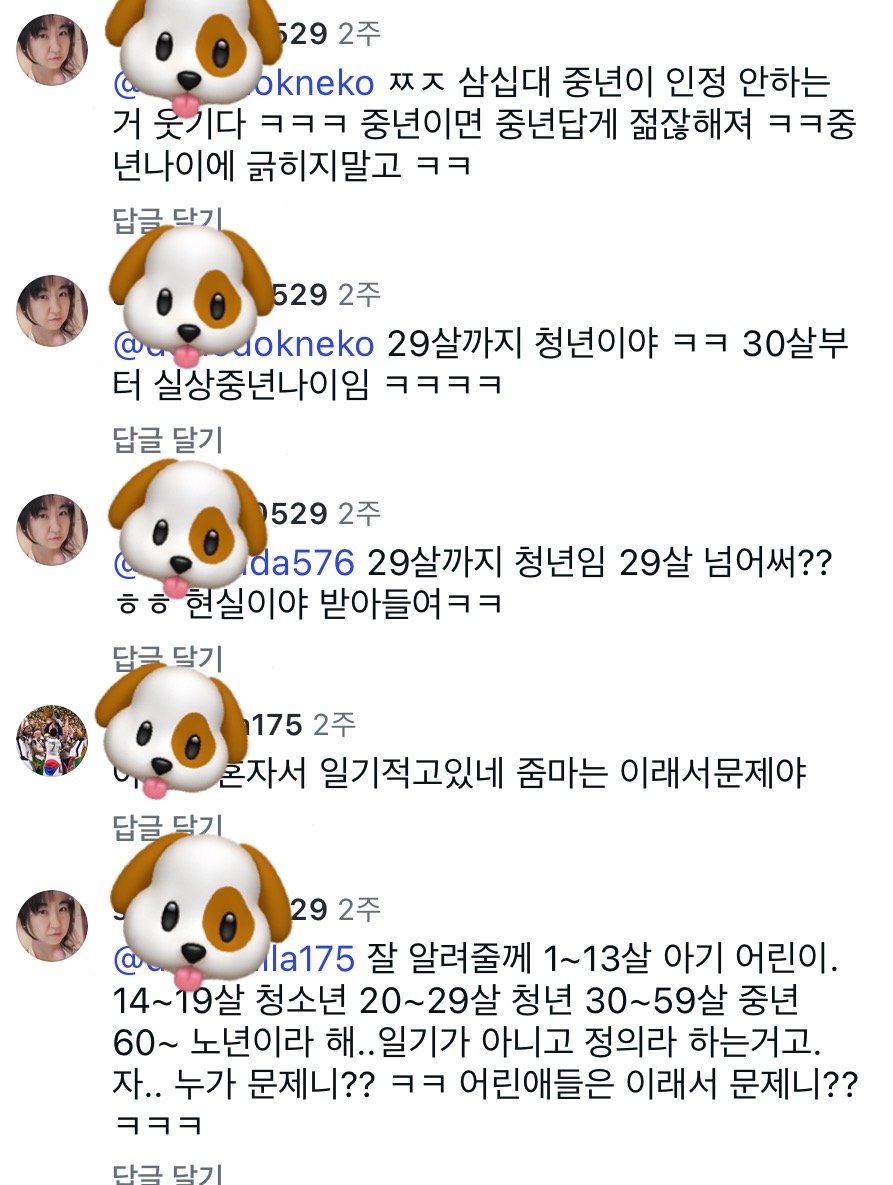 내가 알기론 40부터 중년으로 알고 있고 청년사업도 35세까지 하고 있고 그래서 20대30대는 청년으로 알고 있었는데