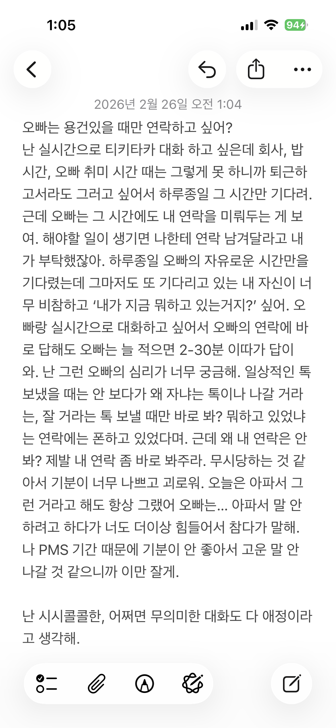 근데 저녁 때는 계속 폰하고 있었다는거야. 그럼 내 연락은..? ……