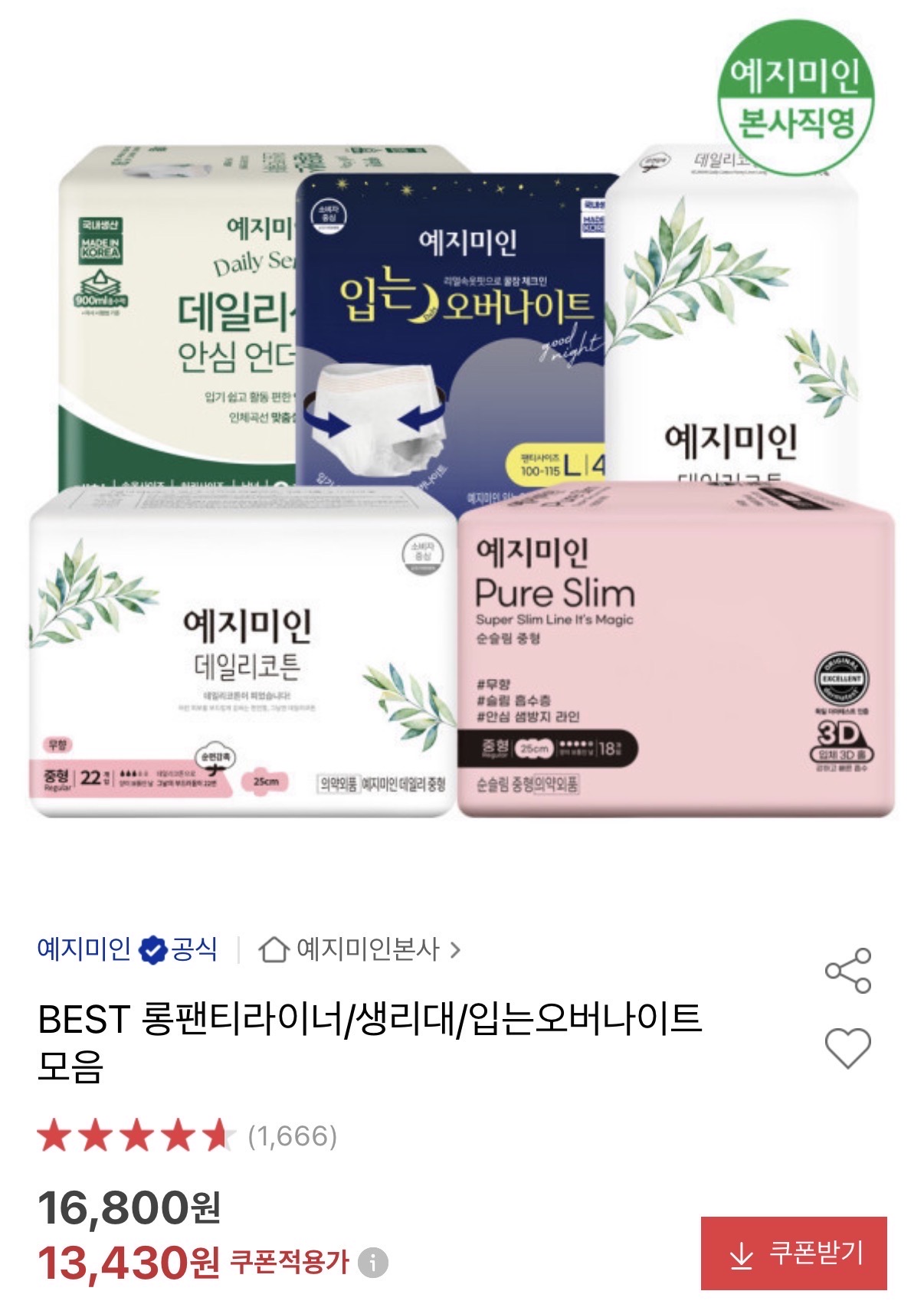 #개이득[옥션]데일리코튼 롱팬티라이너 81개3팩(13,440) - 속닥