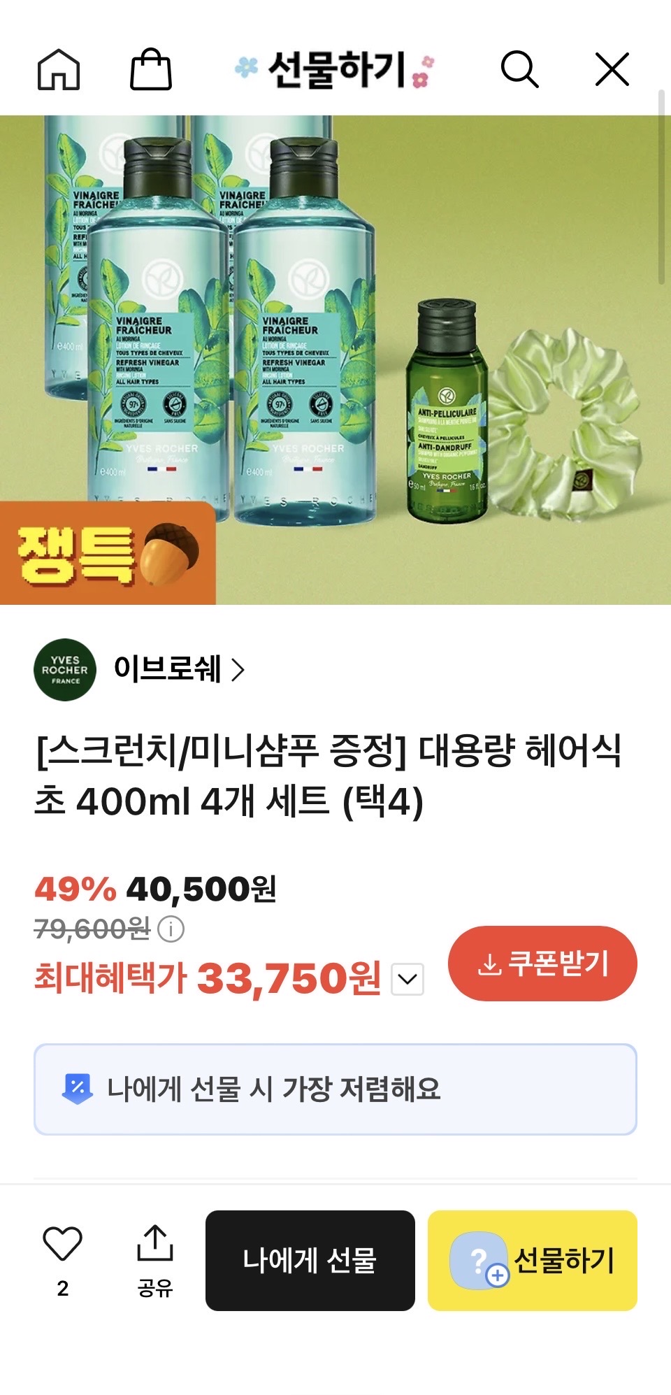카톡선물하기에 헤어식초 저렴하게 떴어!!!
