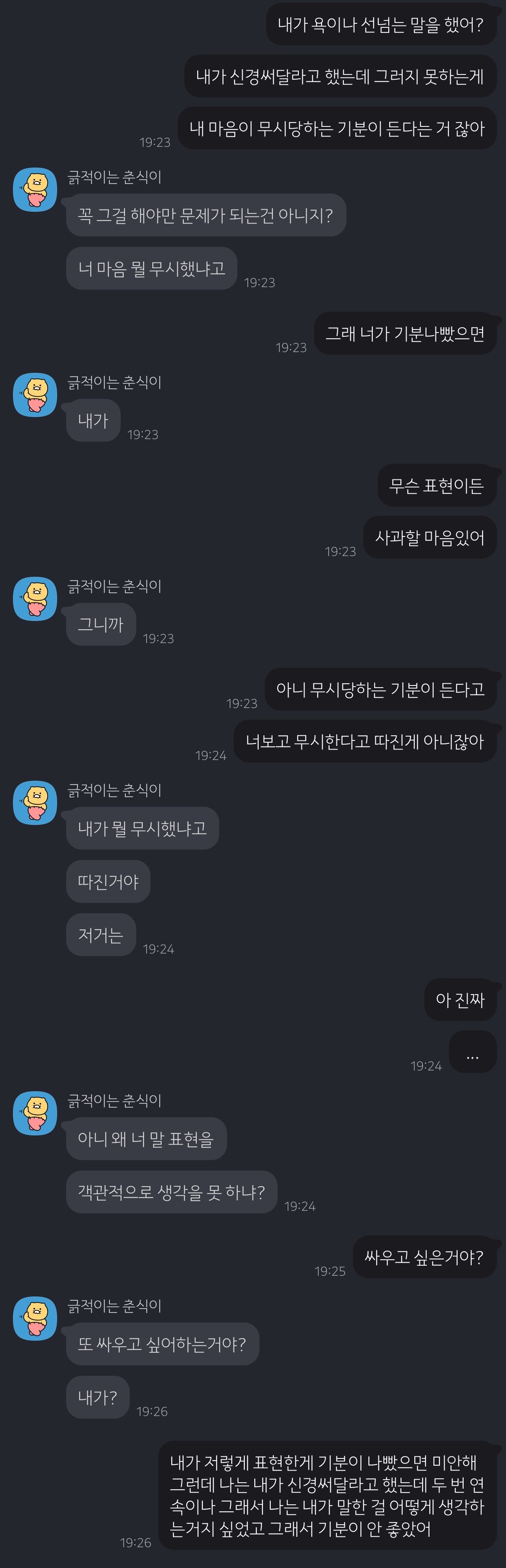 자기가 기분나쁜 거 싸가지 없게 말했을때