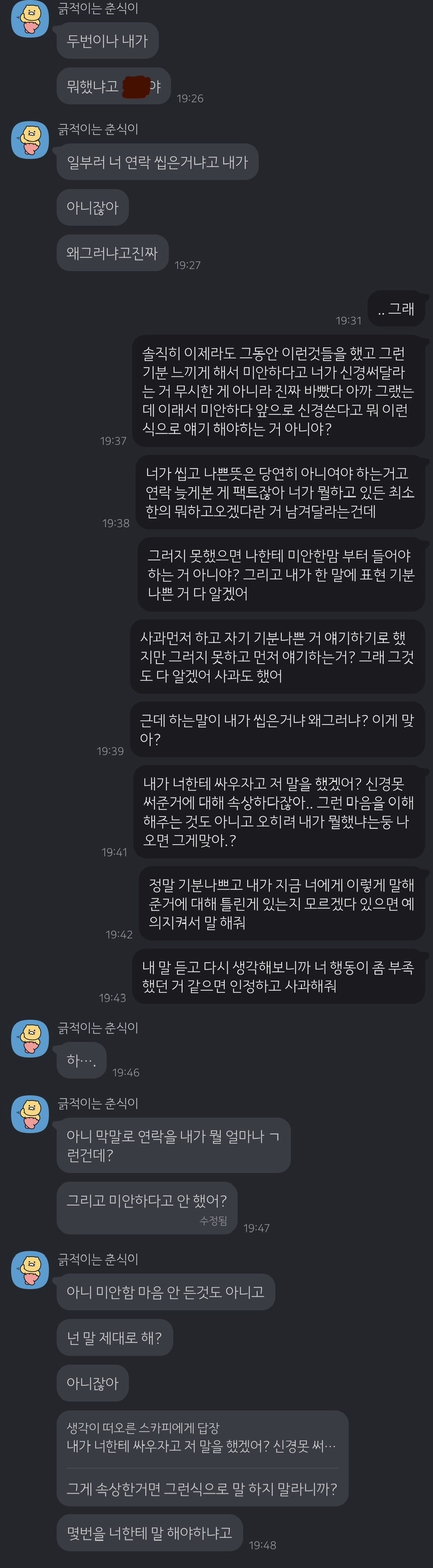 근데 자긴 정작 나보고 사과도 안 하고
