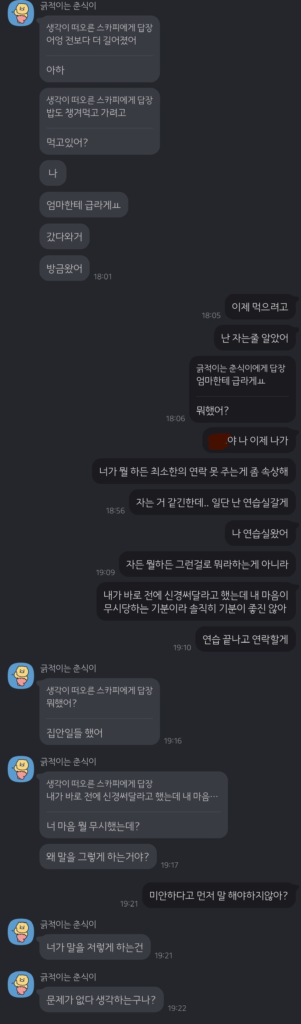 내딴에는 내 말을 신경써주는게 맞나? 싶었음