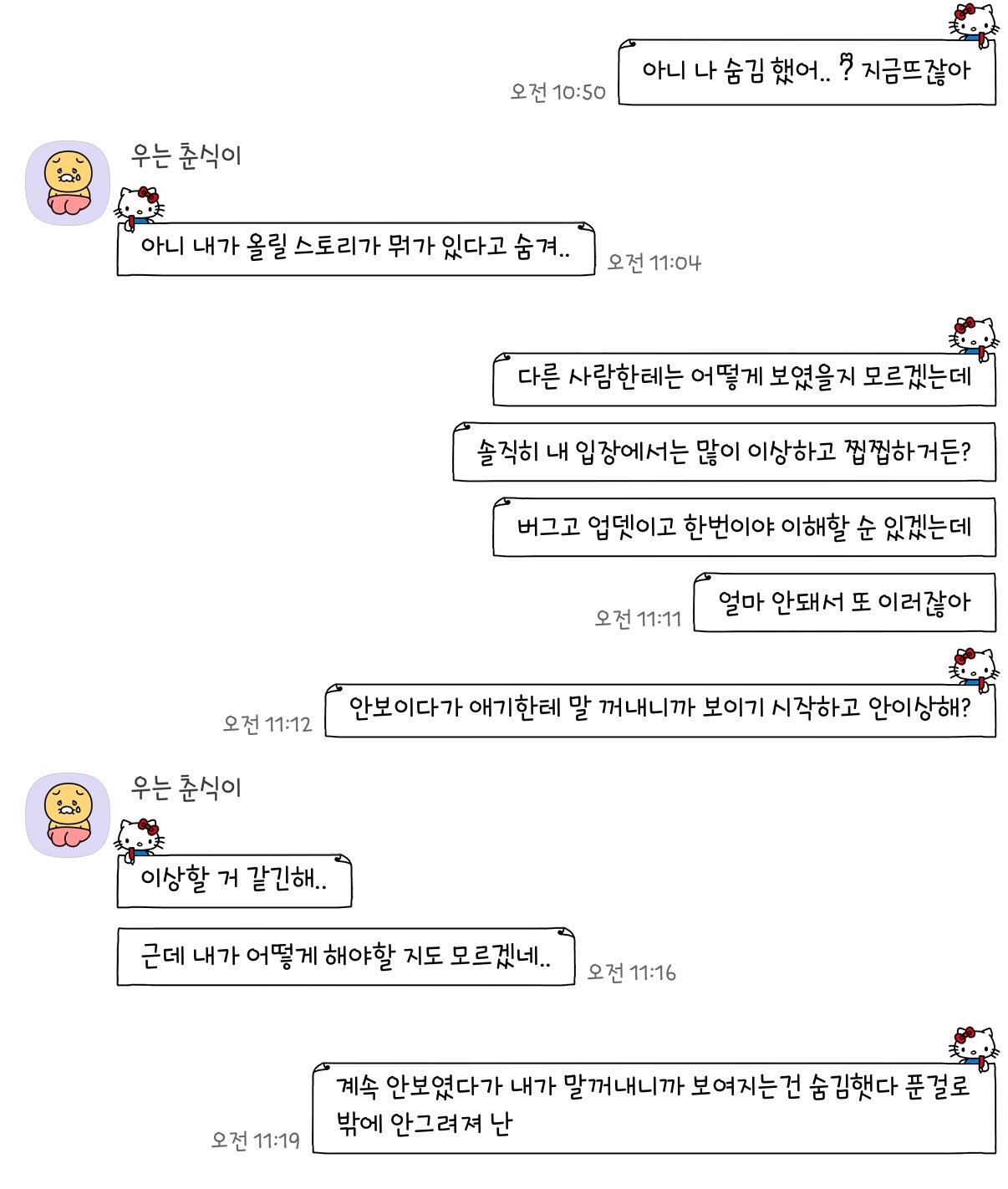 근데 내가 말 꺼내니까 하라 다 보임 (이해가 더더더 안됨 내가 말하고 나서 숨김을 푼거같은 의심)