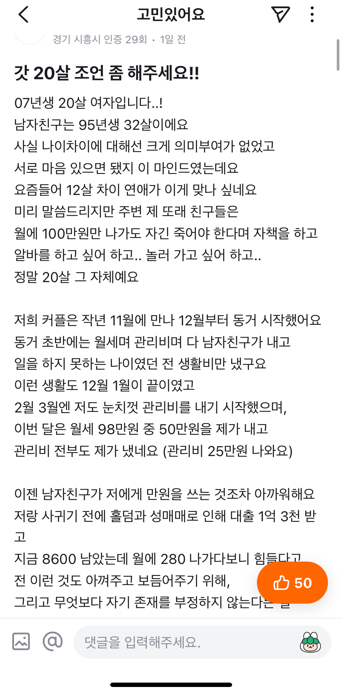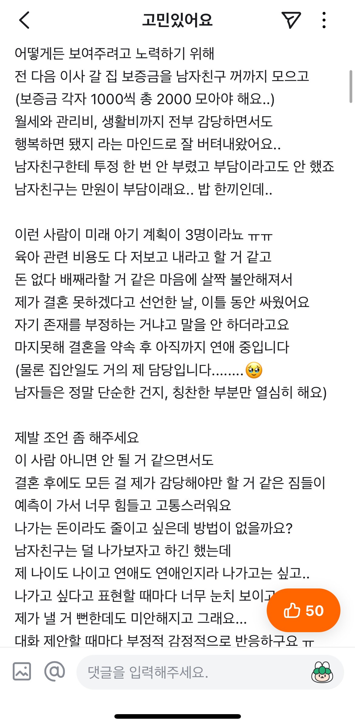 댓글 안 보이는데 다른사람들이 더 좋은남자 만나라 조언하는거 안 들어?