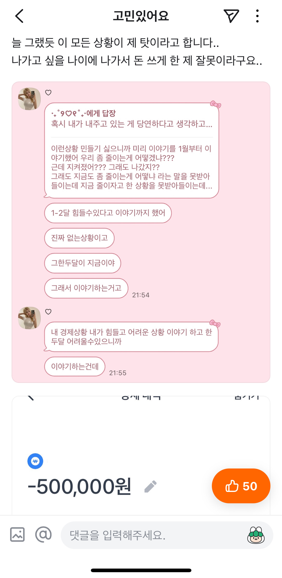 듣고 싶은 말이 있어서 올렷거나 20살인데 700번다는거 보여주고 싶엇나 아니면 익숙해져서 사람들이 남자욕할줄 몰랏나..