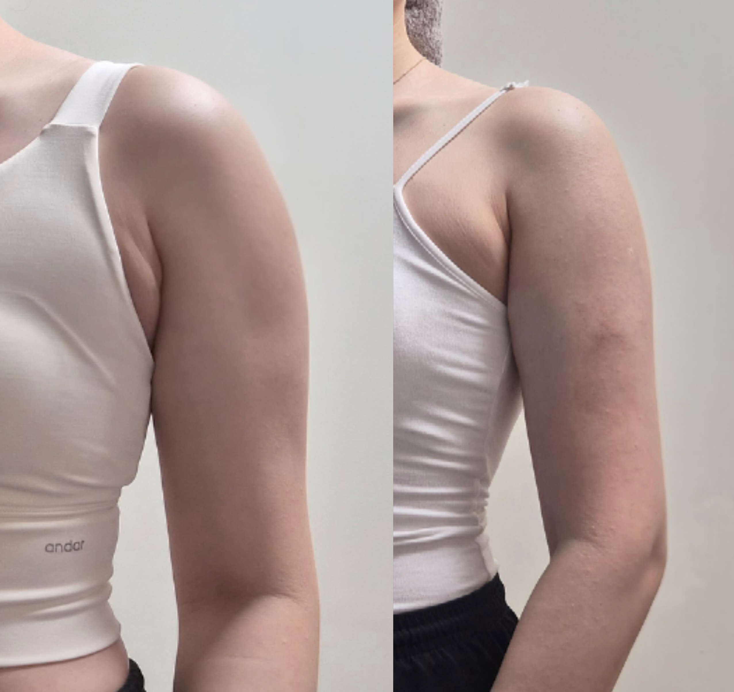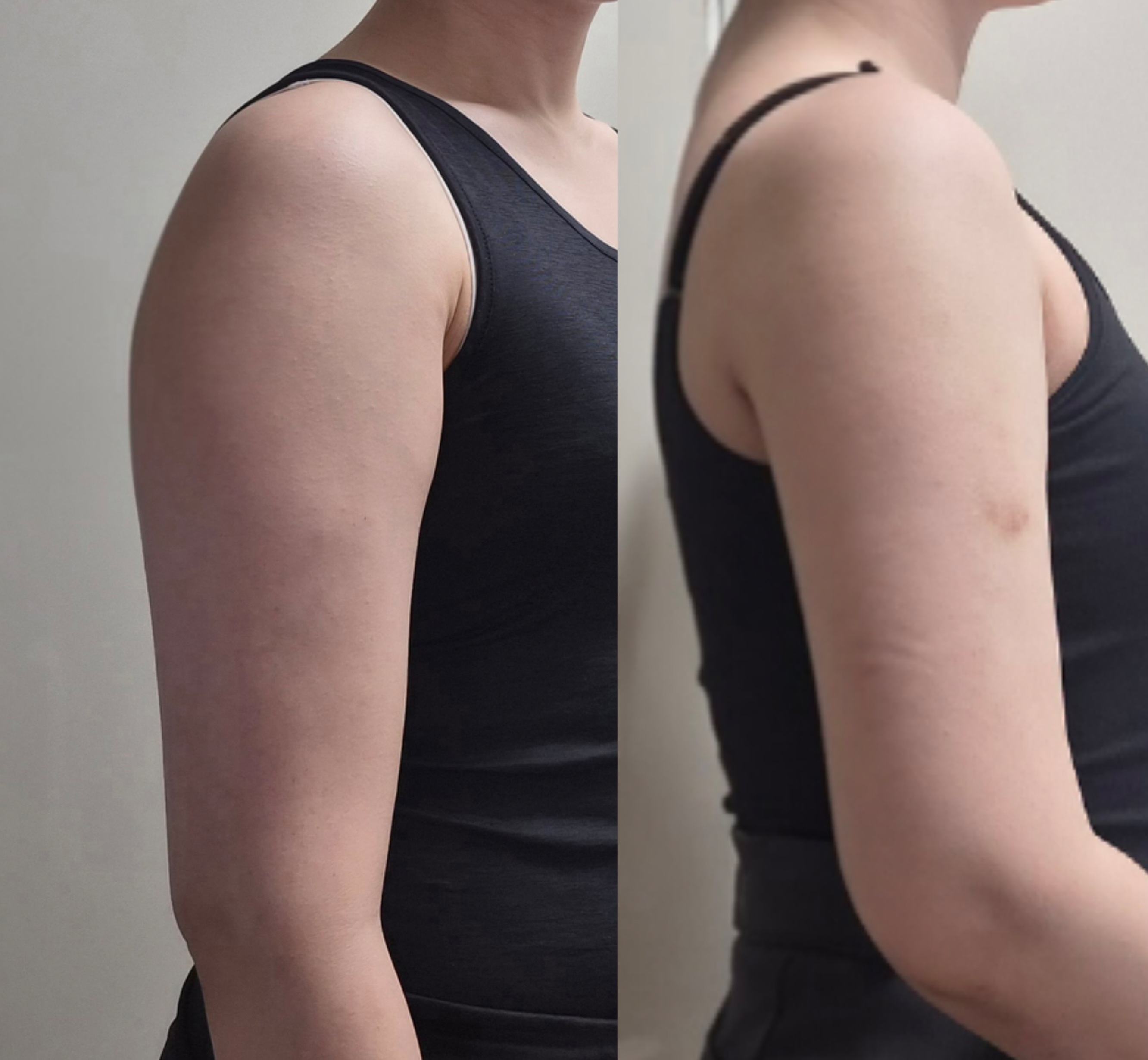팔 라인이 훨씬 부드럽고 슬림하게 정리됨.