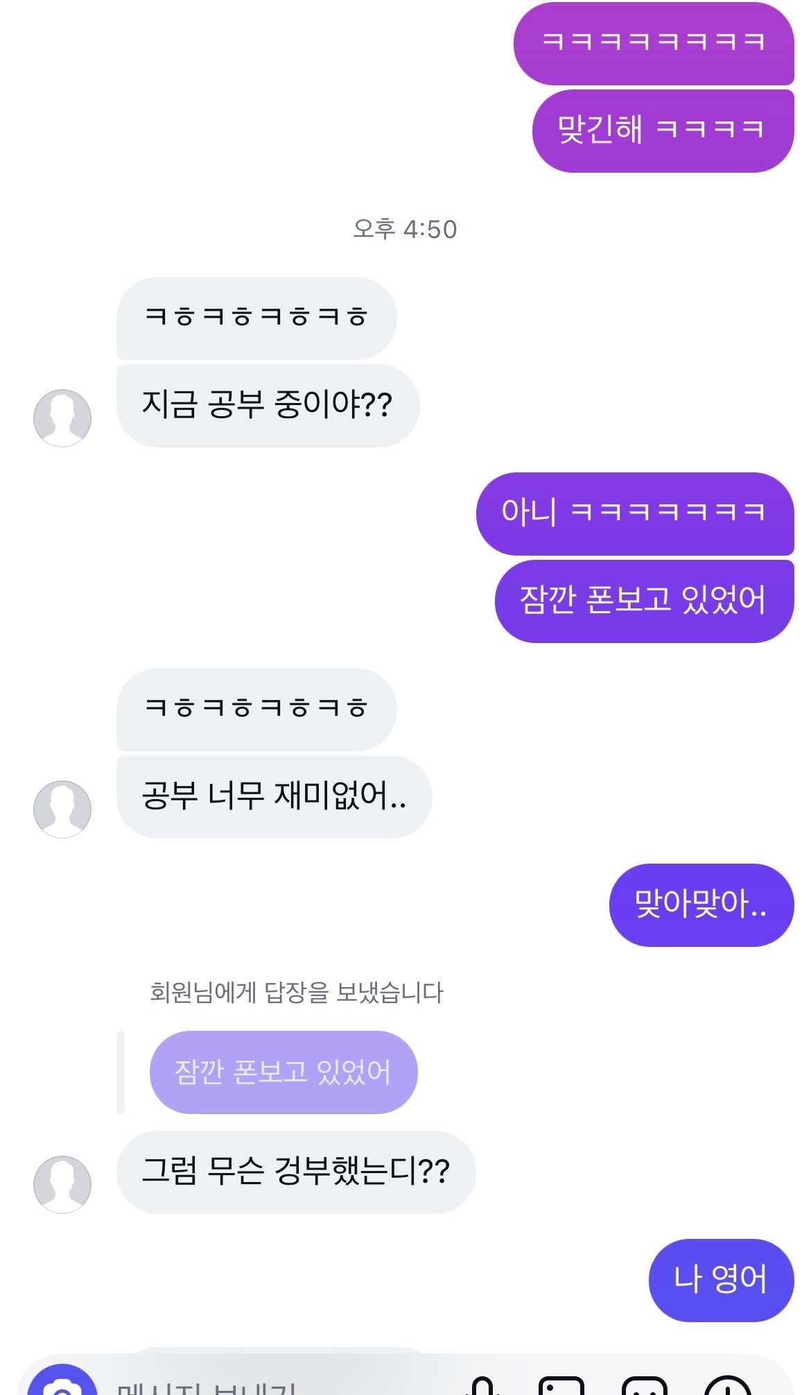 (내가 남자랑 연락하는게 거의 처음이다보니까 ㅋㅋㅋㅋ가 좀 많기도 하고 공감능력같은게 딸리는데 감안해줘..)
