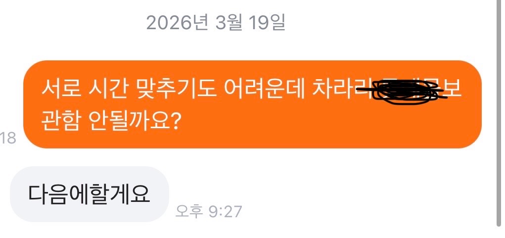 그래서 내가 보관함거래 안되냐고 다시 물어봄!!! 근데 또 안된대 그래서 조금 짜증나서 읽씹했었는데
