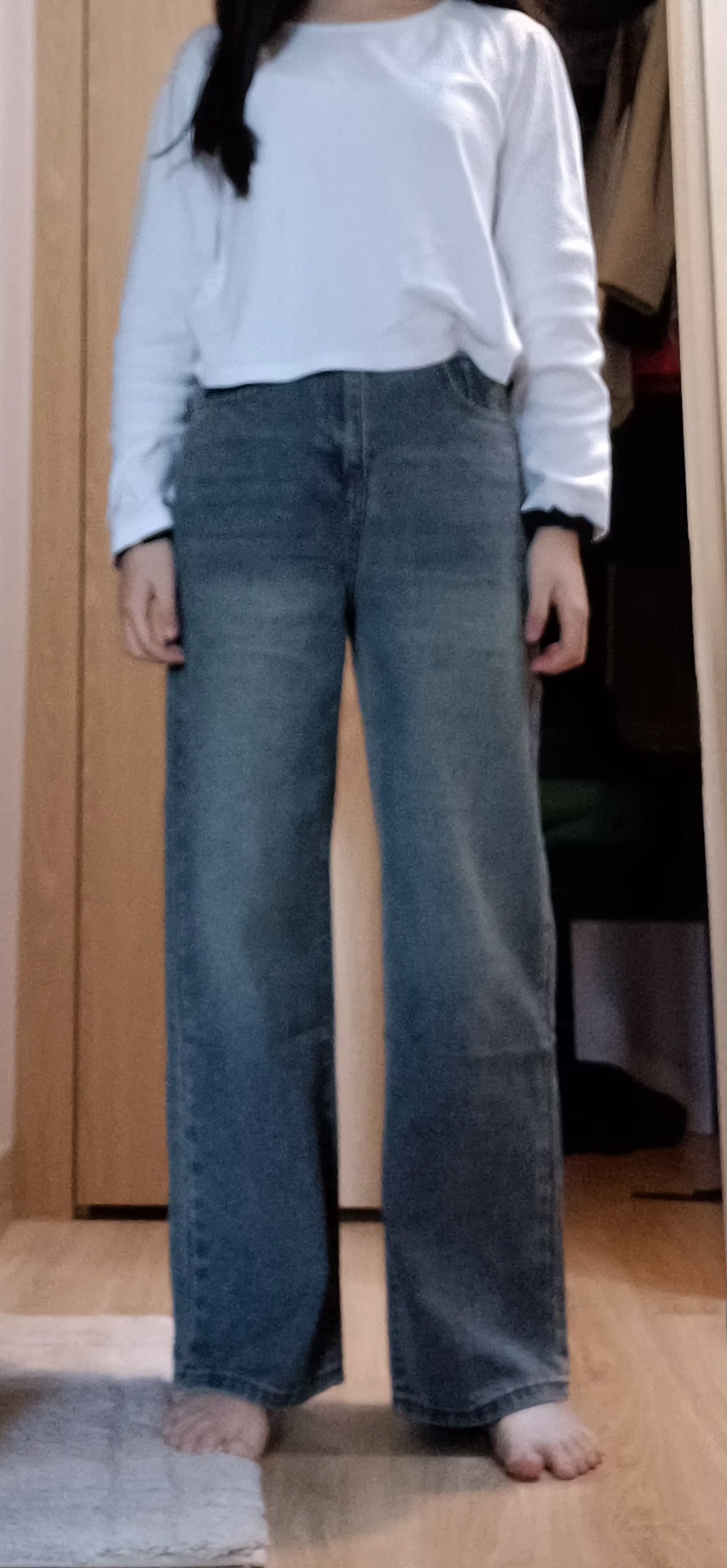 바지 기장 저정도로 입을거면 부츠컷으로 입고 길게 입을거면 와이드로 가는것도 좋고 사진같은 스타일 ㄱㄱ 언니는 상의살때 어깨선 맞춰서 옷 사면 부해보임 없이 잘 어울릴듯