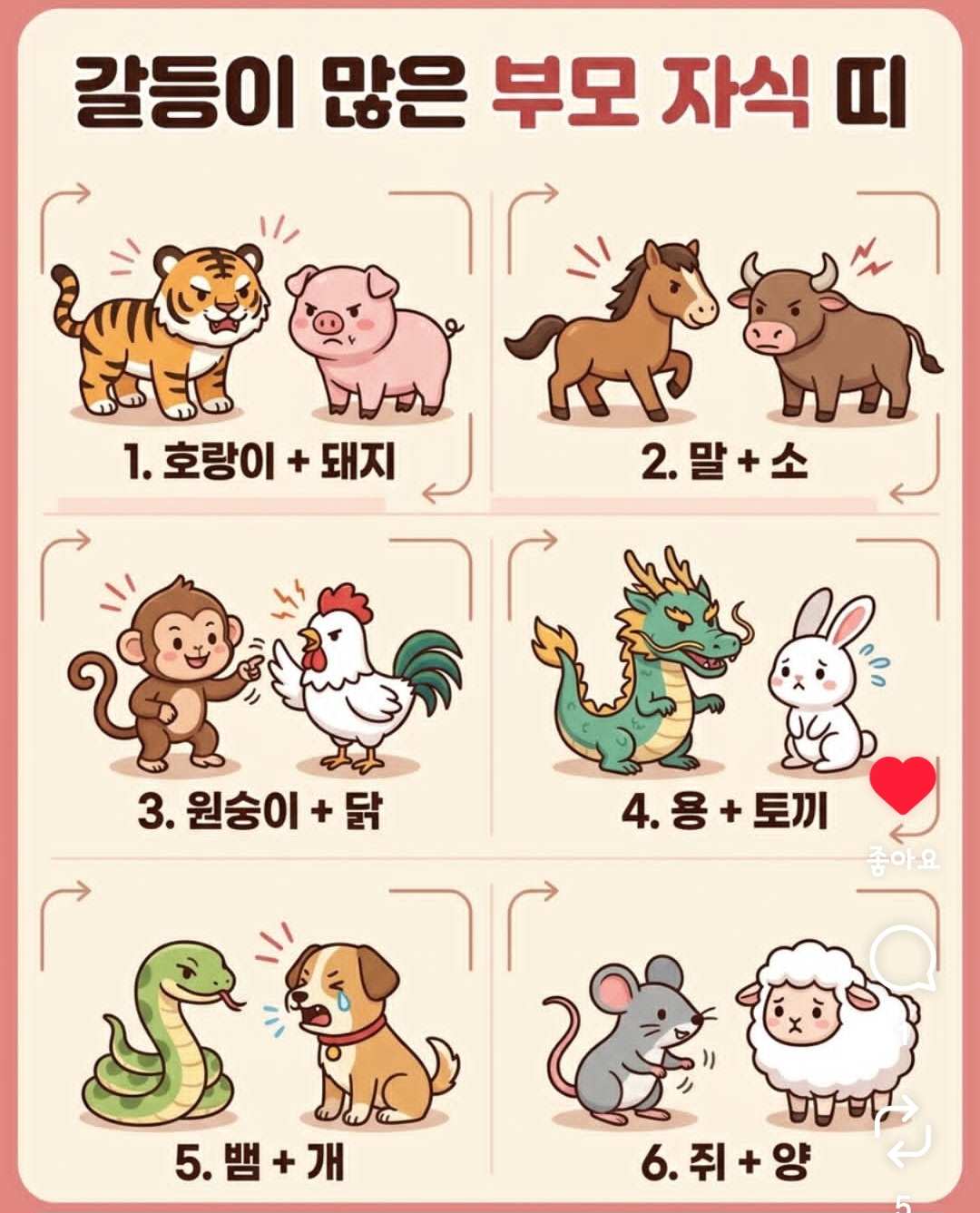 울아빠 개 울엄마 뱀 나 양. 엄나랑 나랑 울아빠랑 엄마랑 갈등 잦은러같은디 ..;
