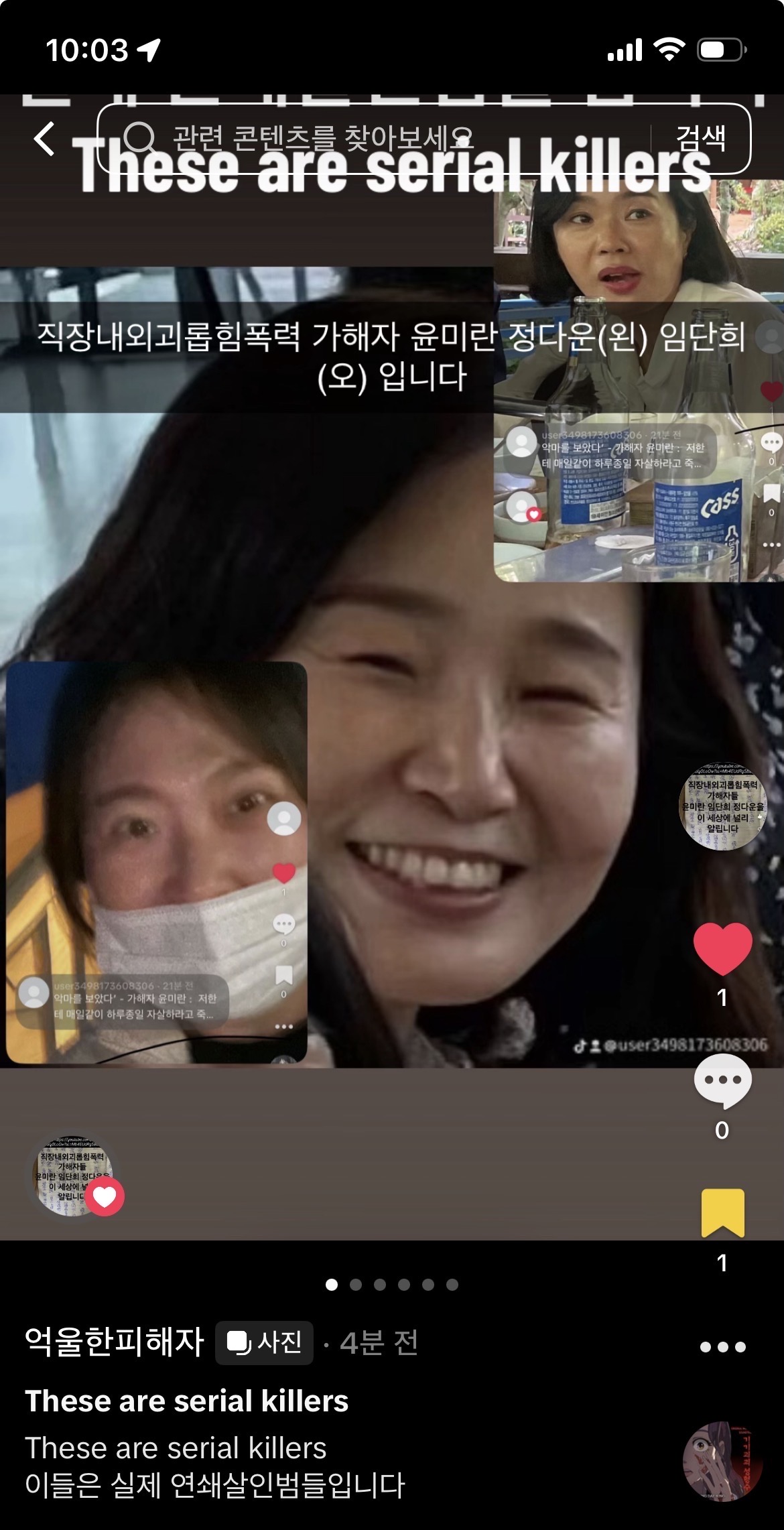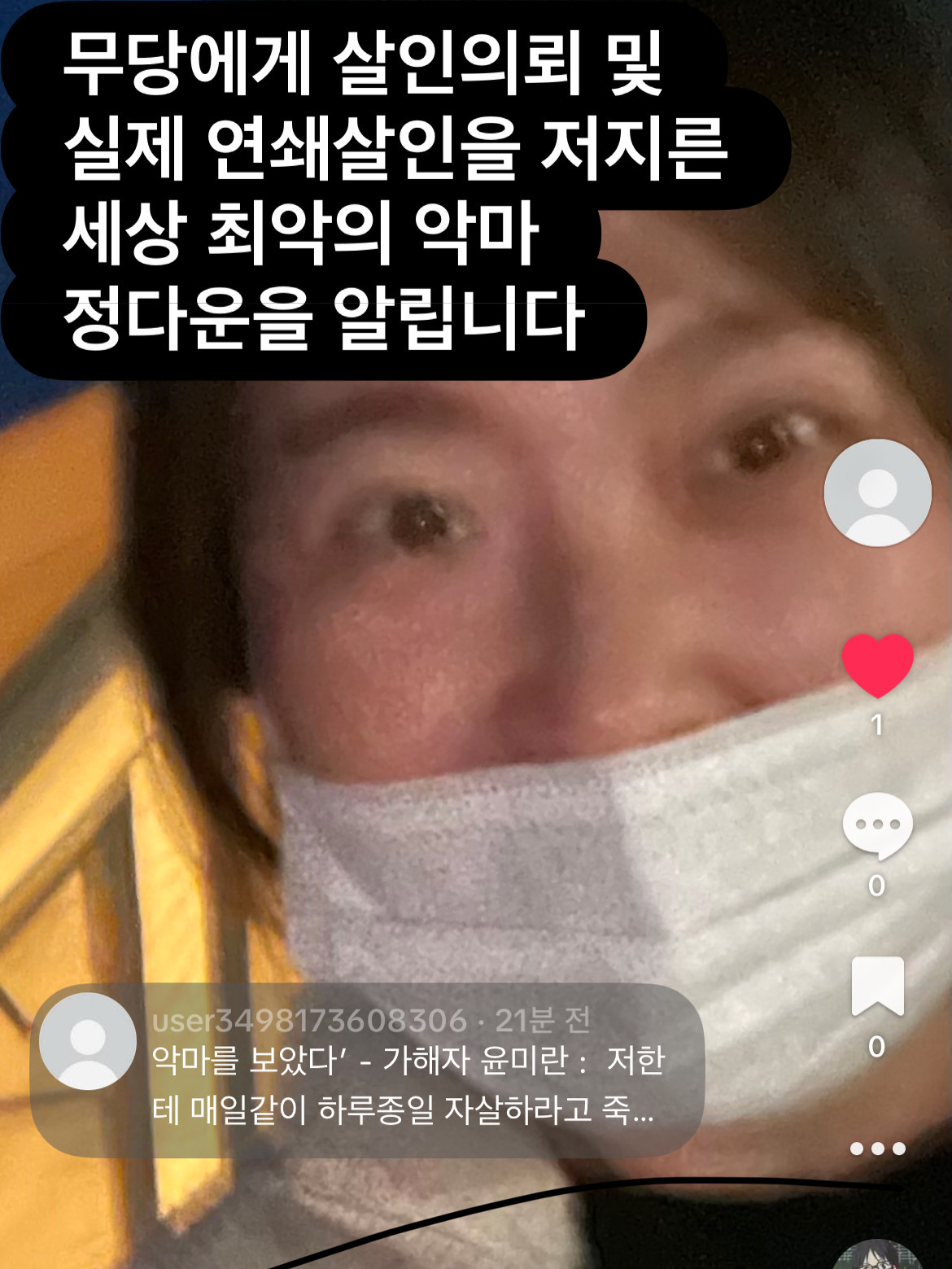 무고한 시민들 및 사람들 모두 죽고 자살하게 한 실제 연쇄살인대범죄자 윤미란을 알립니다 세상 최악의 악마 인간살상무기
