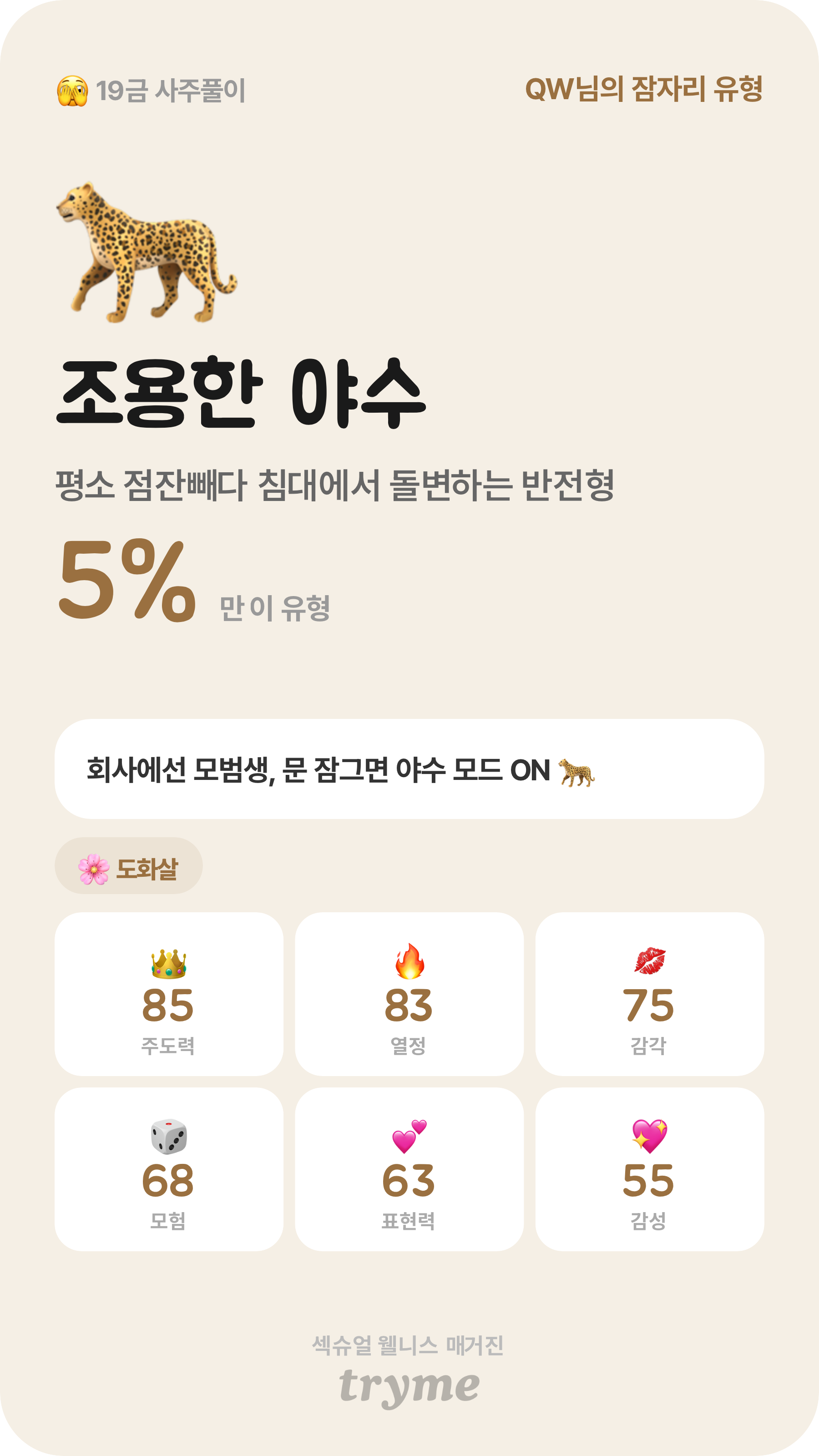 언니들 나 평소에 유교걸인데 결과가 조용한 야수나옴 ㅋㅋㅋㅋㅋ