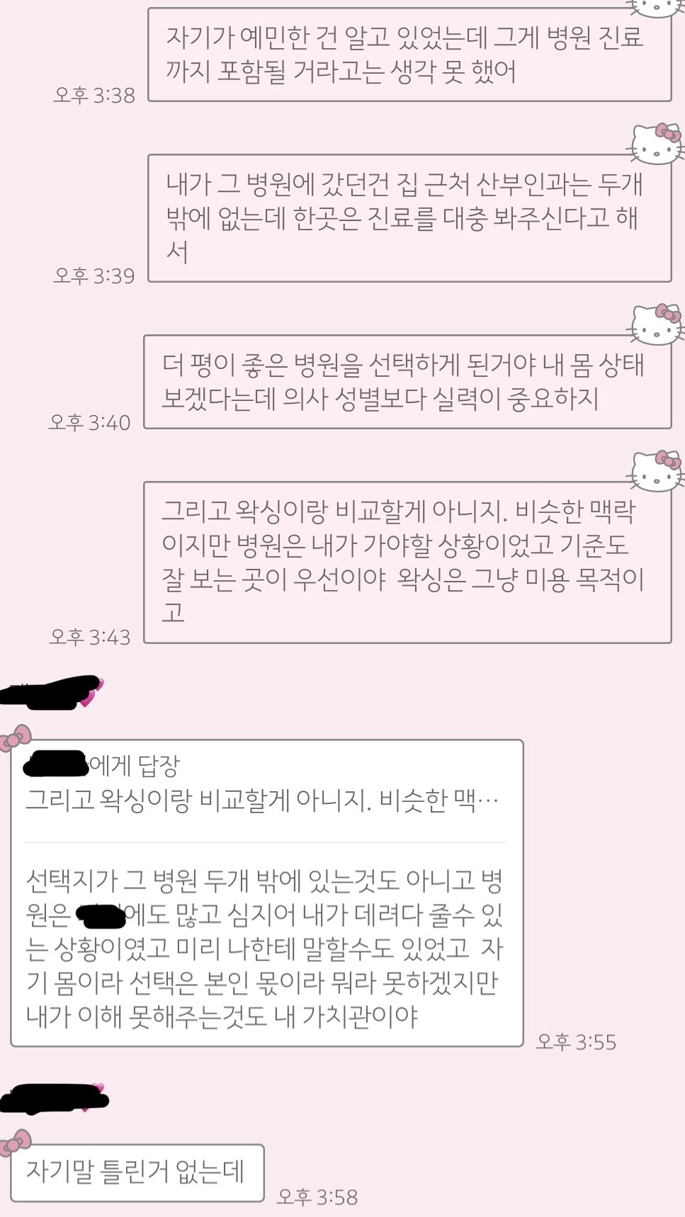와 남자 왁서한테 받은 것도 아니고 산부인과는 애초에 여자들이 가는 병원이고 의사가 남자라고 저렇게 예민하게 나오는 게 맞나… 너무 과민 반응이야