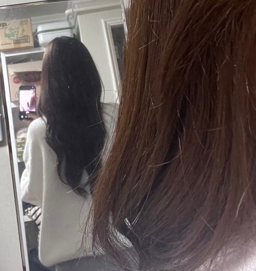 처음 사진이랑 뒤에 사진이랑 묘하게 길이 차이 나는 거 같긴한데.. 근데 1년내내 붙임머리면 원래 머리가 어느정도야?