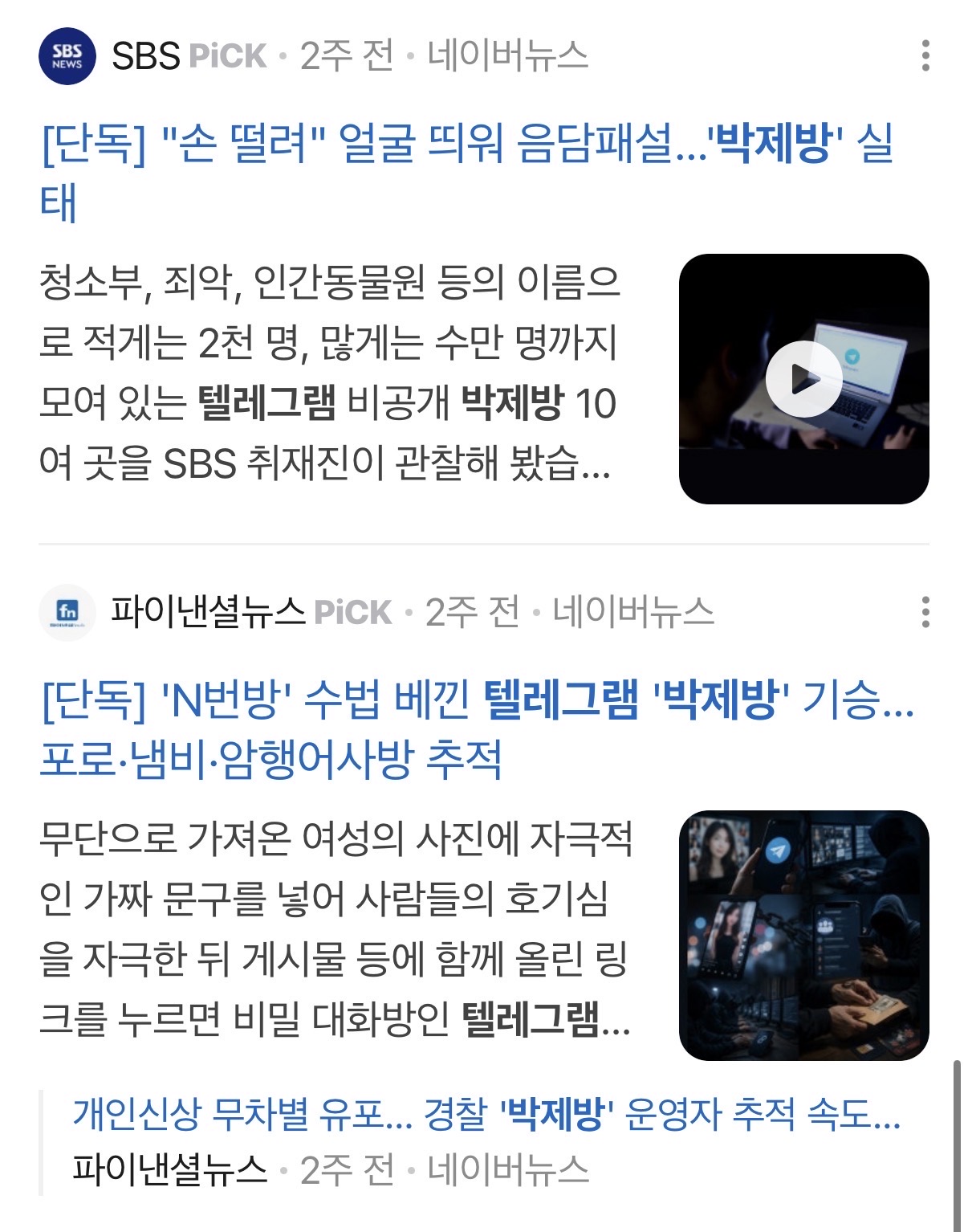 텔레그렘 박제방 치면 2~3주 전 기사들 많이나옴