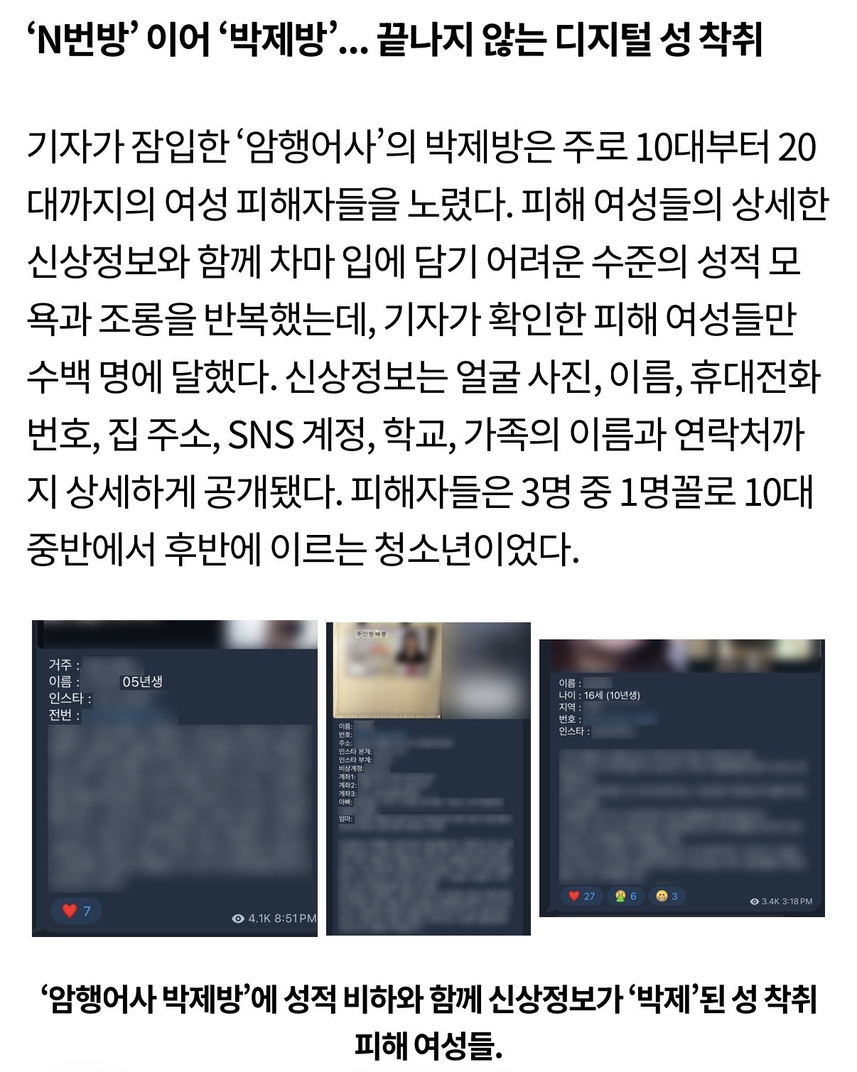 N번방이랑 수법 똑같음. 근데 단순히 성착취만 하는게 아니라 계좌까지 알아내서 계좌도 정지시킨대