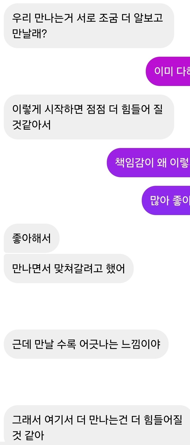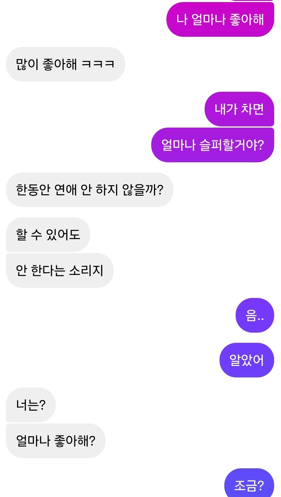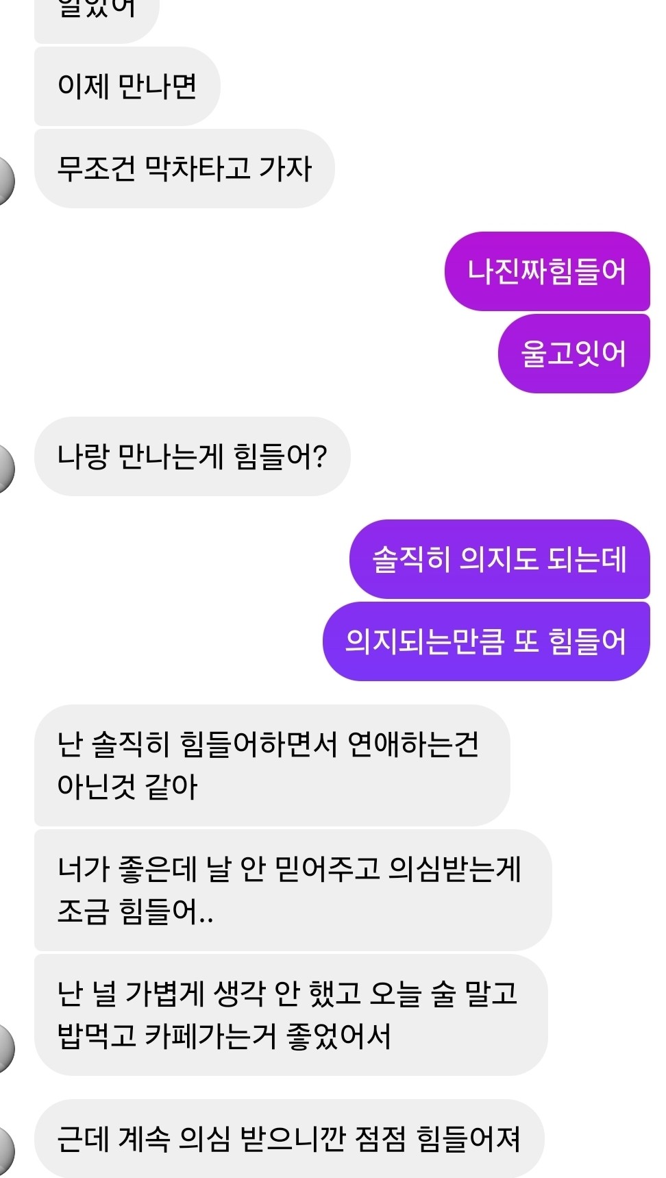 진짜 나중에 후회하지말고 떠보려고 하지말고 본인 마음 솔직하게 얘기하고 성숙한 만남 가져라 몇살이니