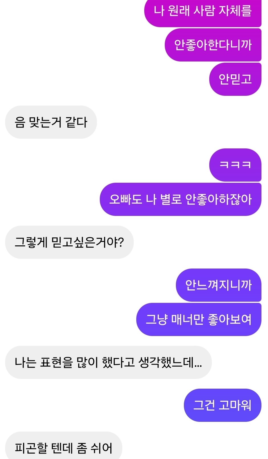 엥... 그냥 언니가 그날 이후로 그 사람한테 정떨어져서 먹버프레임 씌우려는걸로 밖에 안보이는데? 다른 언니 말대로 언니가 별로 맘이없어보여