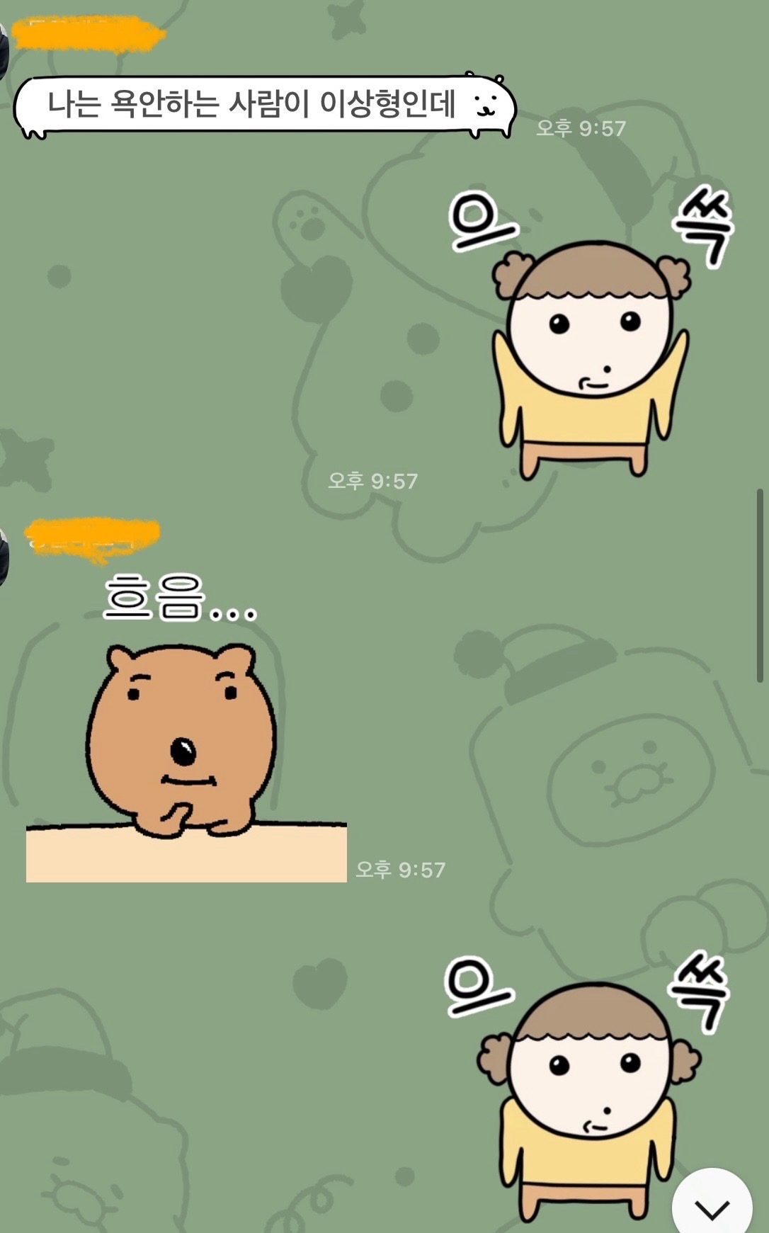 나같으면 눈눈이이 권법 씀 나는 저런 말 안하는 사람이 딱 내 이상형이던데 ㅇㅇ이는 흠; ㅇㅈㄹ로 보낼듯