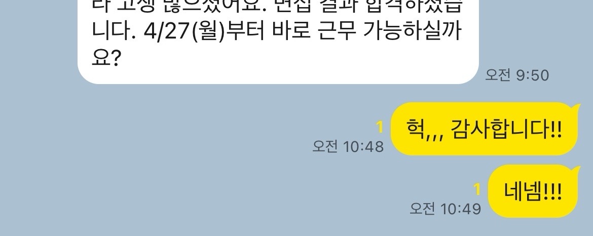 부럽다 ㅠㅠㅠ 나도 취뽀 성공하길!! 언니 기 받아갈게〰️〰️〰️〰️