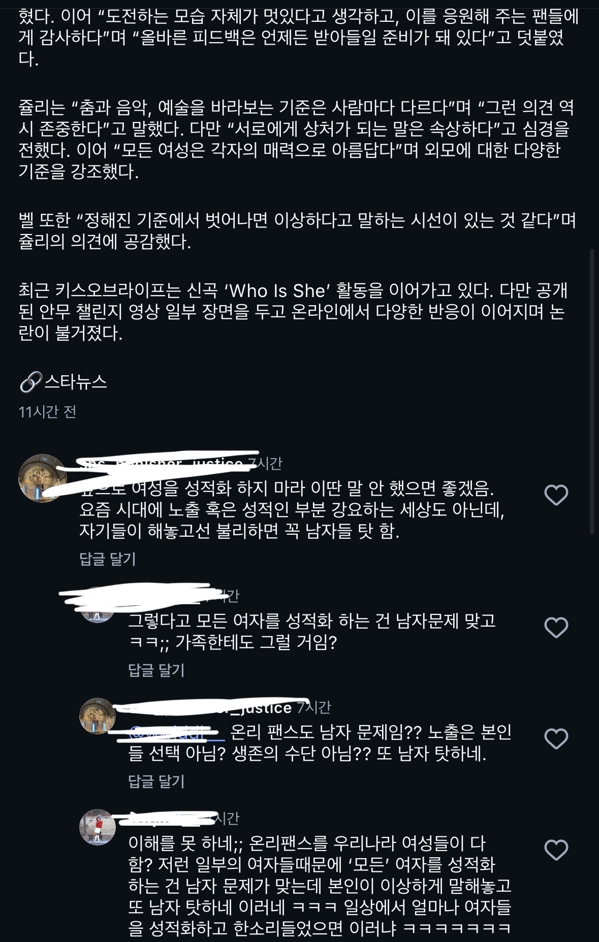 실시간 랭킹1생리가 하루만에 끝날수가 있어..?ㅠㅠㅠㅠ1242가슴이 작으면 얼굴이 예뻐야하고3013코 수술 한지 5개월째2004친구한테 넘 작은 걸로 맘 상하는 걸까 ㅋㅋ575아 돈이 너무 야금야금 나갈 때가 많음376먹버남이 갑자기 카톡 답장함717언니들 이거보고 언니몸지켜1258임테기 봐줄 수 있을깝..289아빠 눈치 보느라 정신병 올 것 같음1410나는 뉴진스가 너무 그립다13