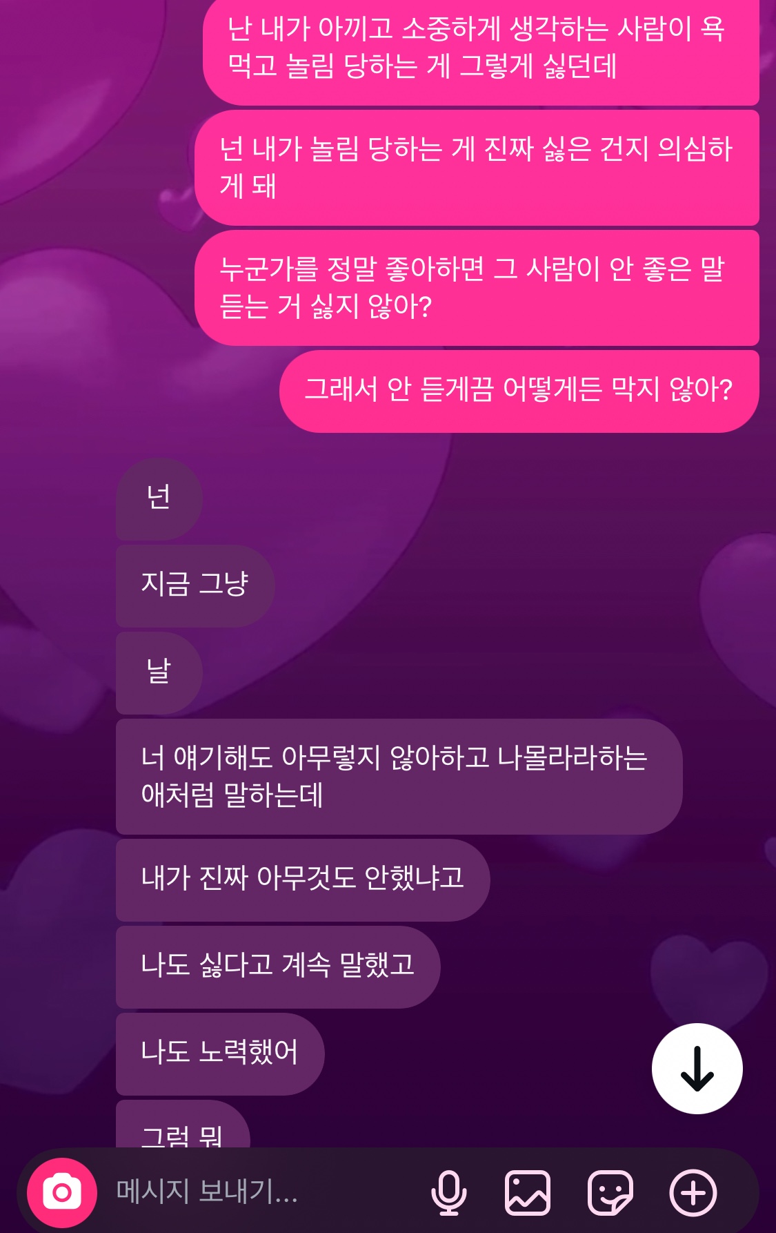 글쓴이@빠른언니6 되게 세게 말하긴 햇엇어 이 일이 번져서 남친이 친구랑 거의 한 달 손절햇을 정도인데 어ㅐ 그대로지??? 내가 뭘 해야해ㅠ