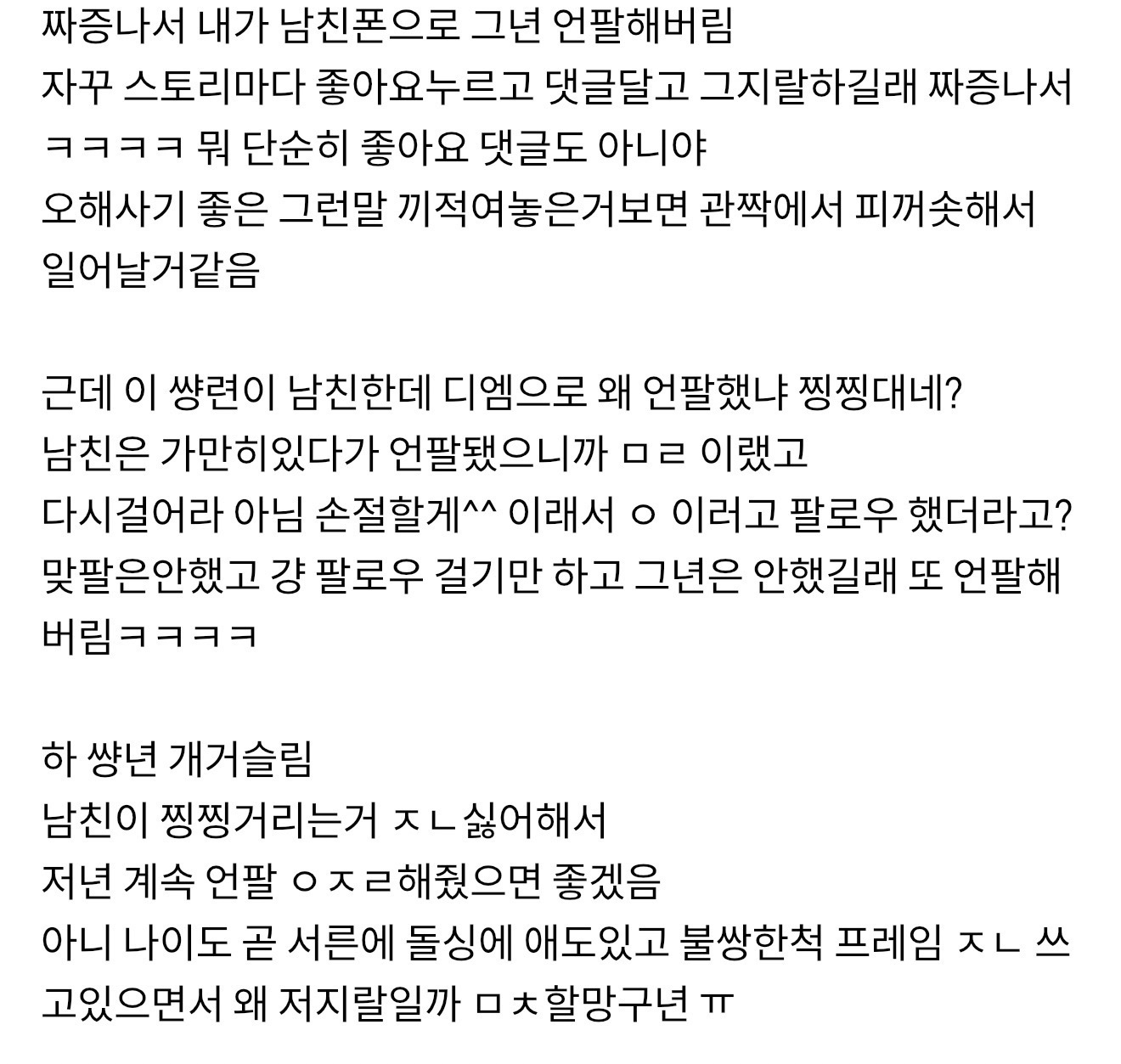 얼마전에 남친이 걍 언팔하고 팔로워 삭제했길래