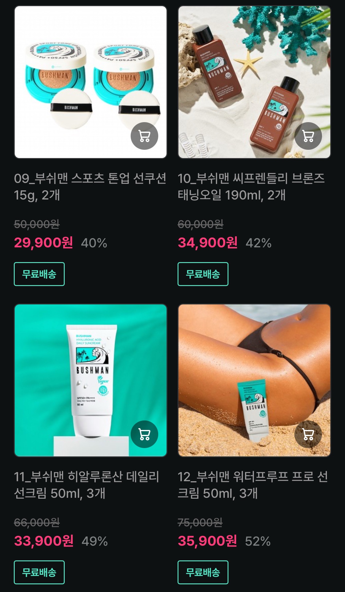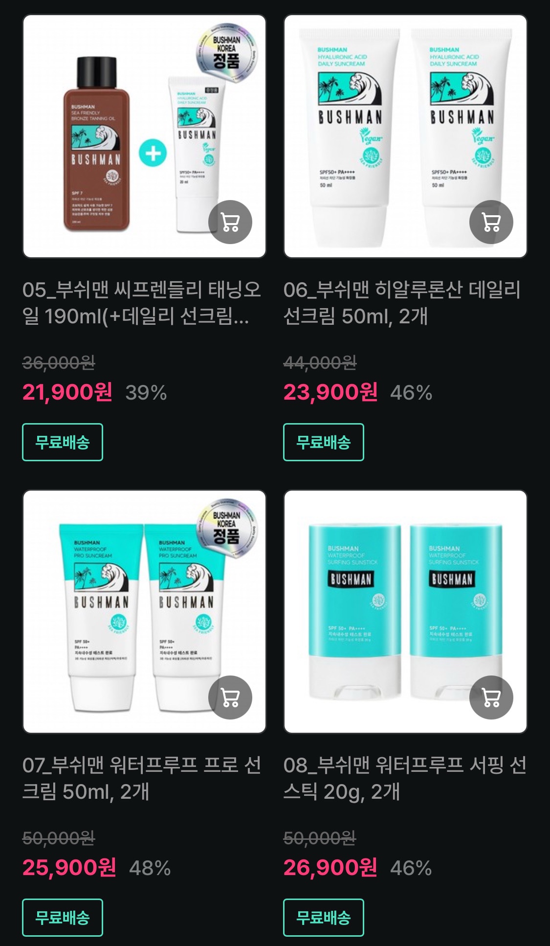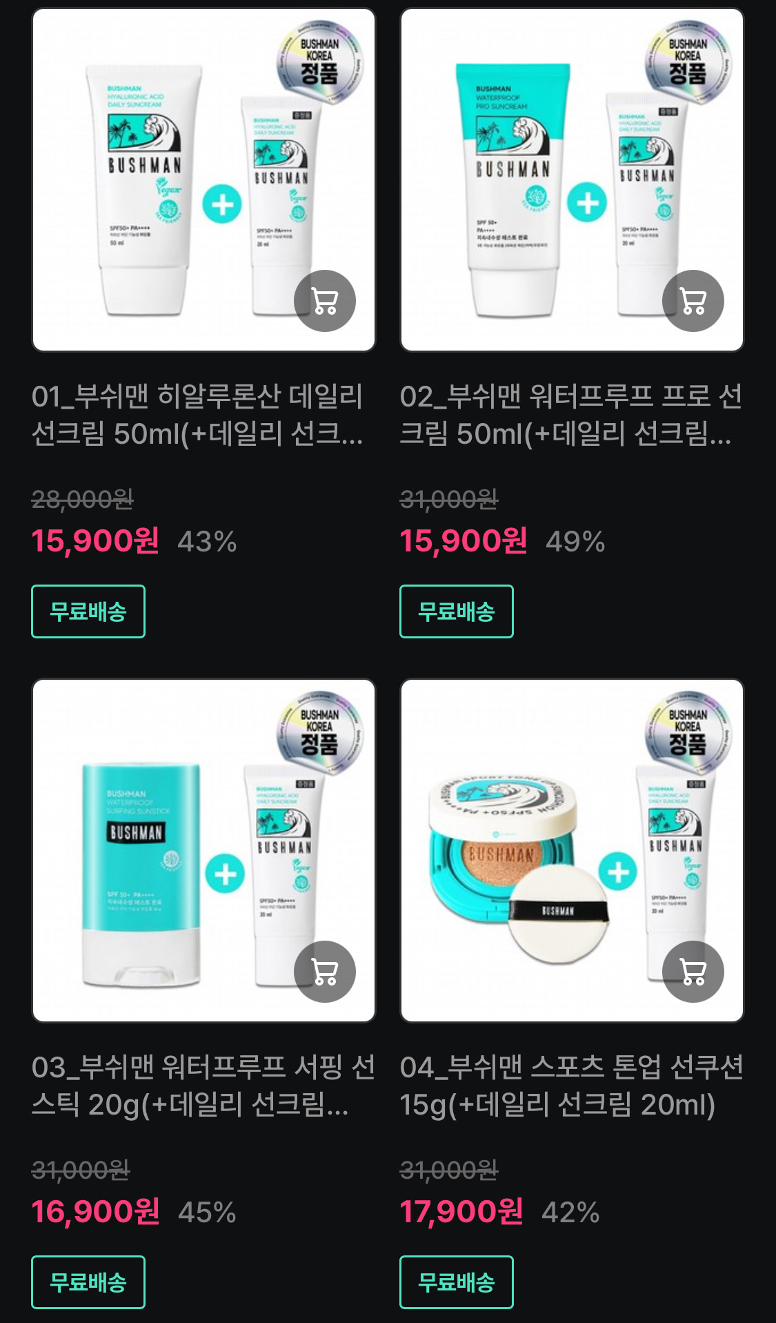 부쉬맨 선케어 전 상품 라이브 할인하넹
