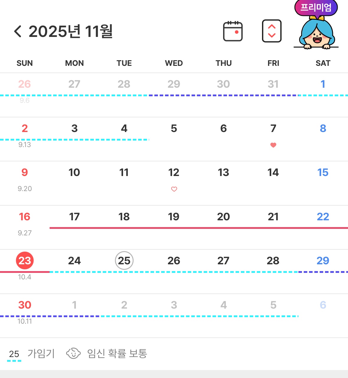삘강은 생리날짜고 찐한 파랑은 배란기야