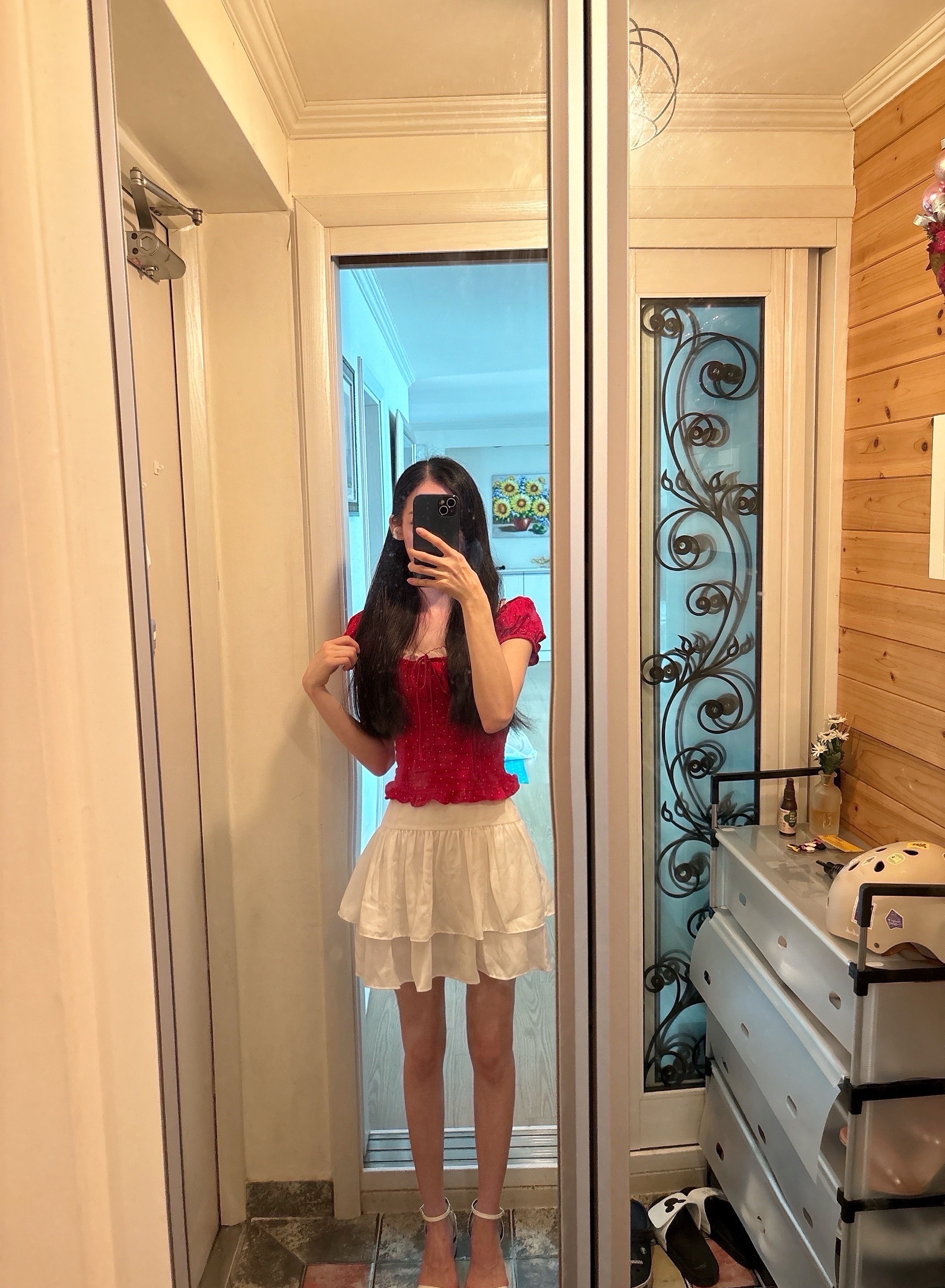 갈때 이렇게 입을려는데 어때? (**아니면 밑에꺼 빨간색 블라우스로 입는게 나을까?)