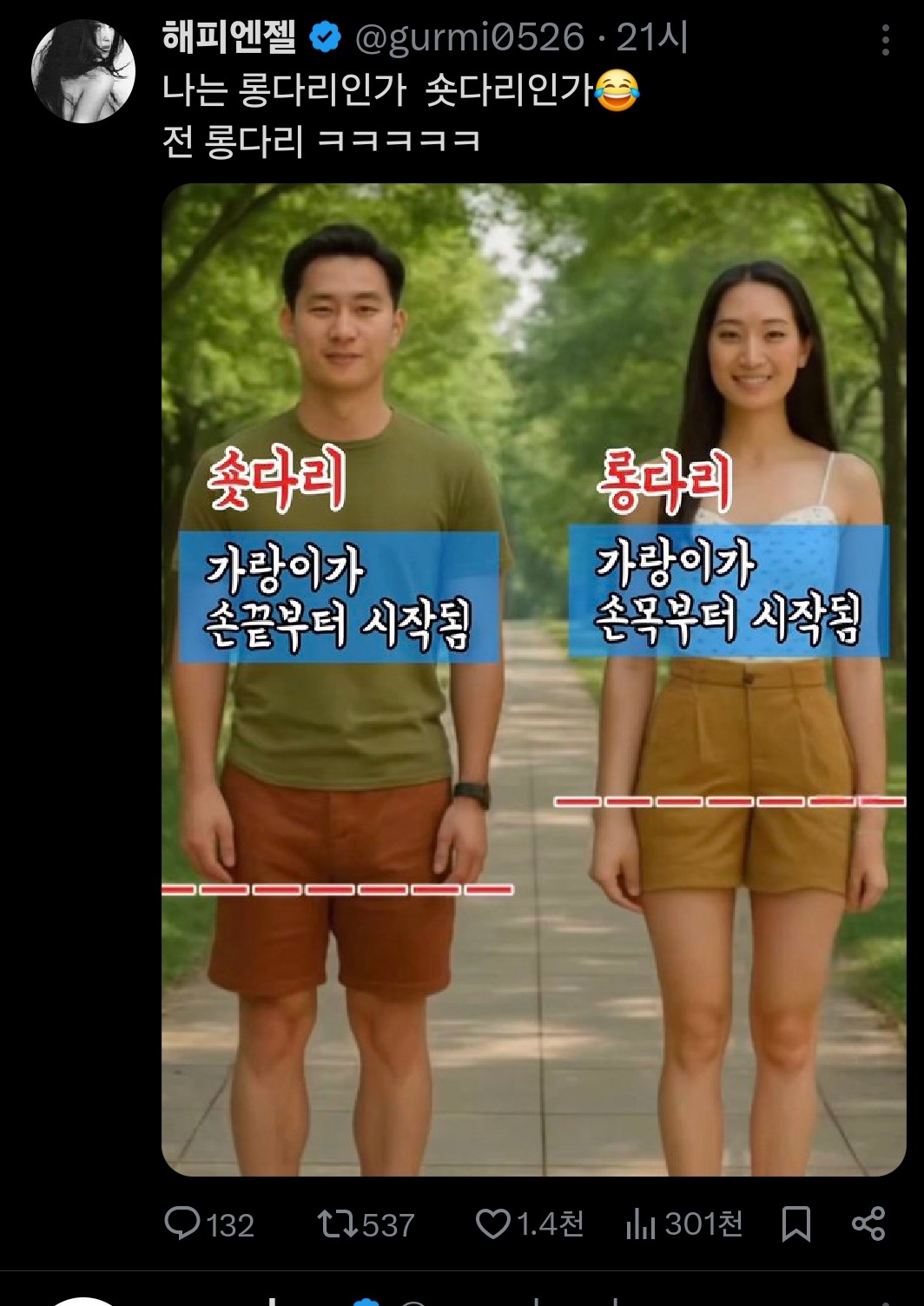 롱다리 숏다리 구분법