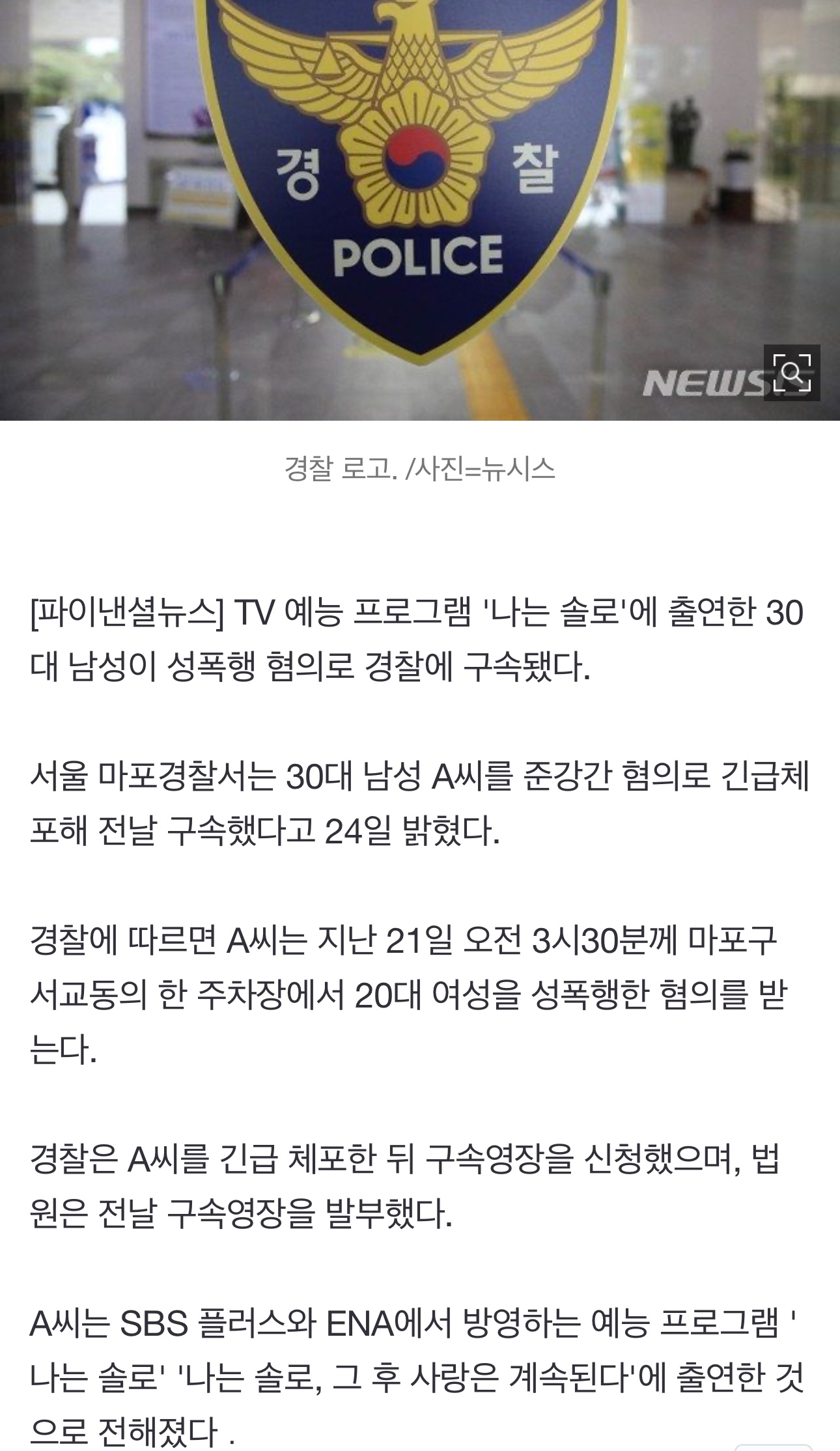 ‘나는솔로' 출연한 30대 남성, 준강간 혐의로 구속 ㅉㅉㅉ