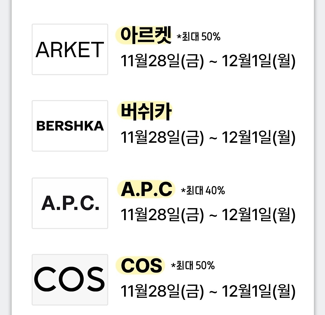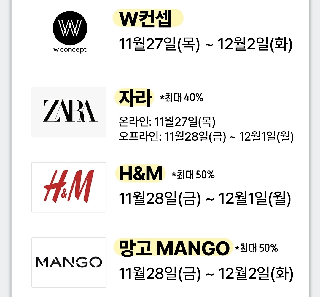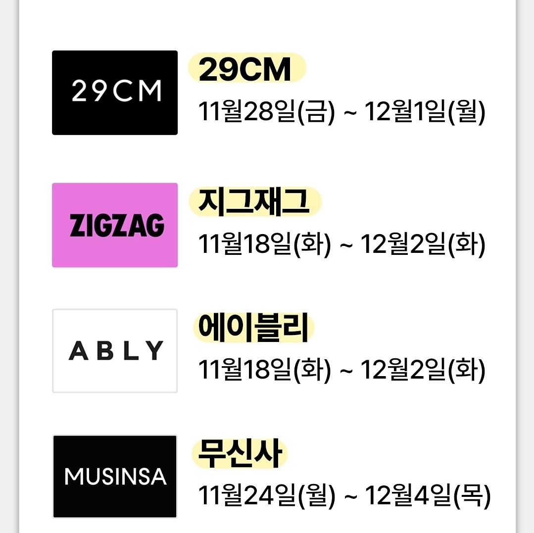 이번엔 브랜드별 세일 일정도 이제 떴더라구