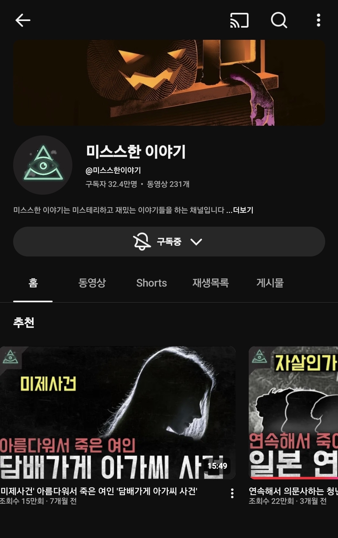 다른 잼난 미스테리 채널 있음 좀 알려줘라ㅎㅎ