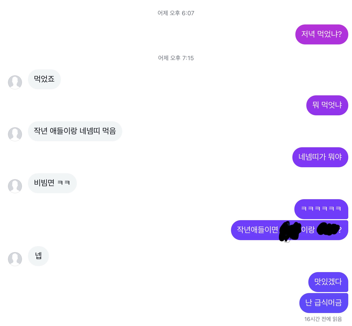 나 진짜 어쩌지ㅜㅜ어제 혹시 읽씹 했나? ㅏ생각하고 들어 갔더니 읽씹 했더라구 근데 진짜 절망적이였어 근데 맛있겠다 이랬어도 읽씹했을거 같긴한데,,