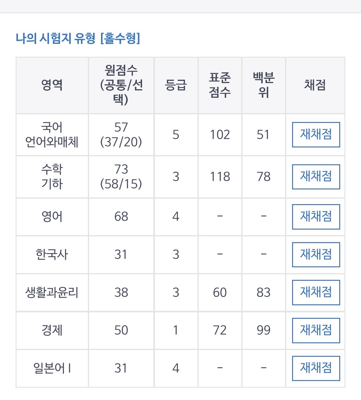 재수했는데 이 성적이면 현실적으로