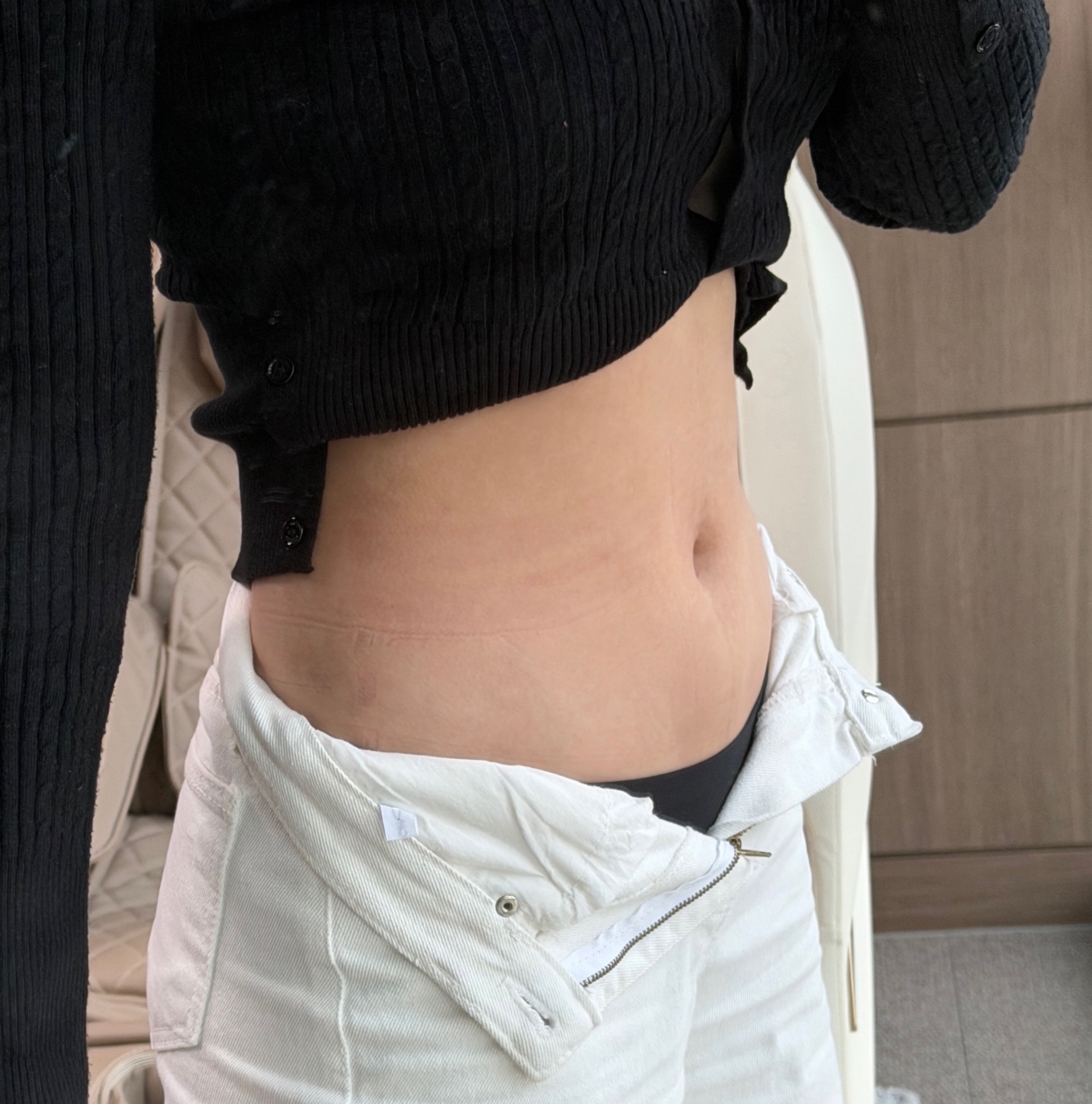 일단 붓기랑 멍은 거의 다 빠졌어! 초반엔 배가 묵직하고 만지면 낯설었는데, 지금은 일상생활하는 데 불편함 1도 없음 👍 옷 입을 때도 배 쪽이 훨씬 가볍고, 예전처럼 꽉 끼는 느낌이 아니라서 그게 너무 좋다 😭✨