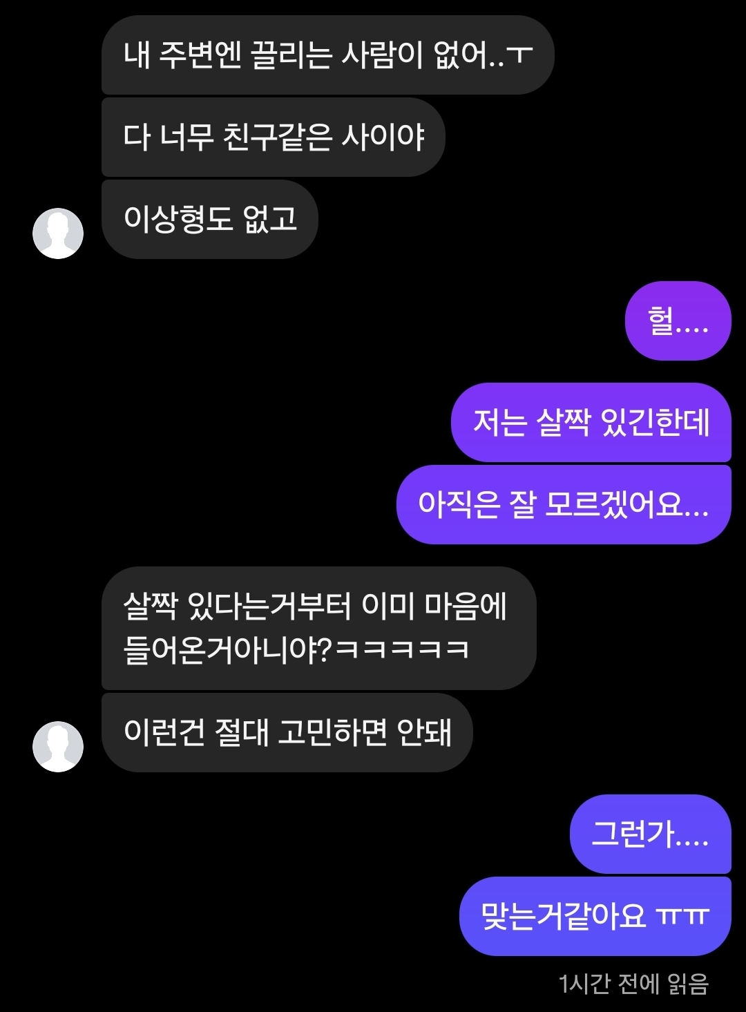 그리고 초반에 디엠할때는 디엠에 하트눌러줬는데 요즘에는 그냥 읽기만해요