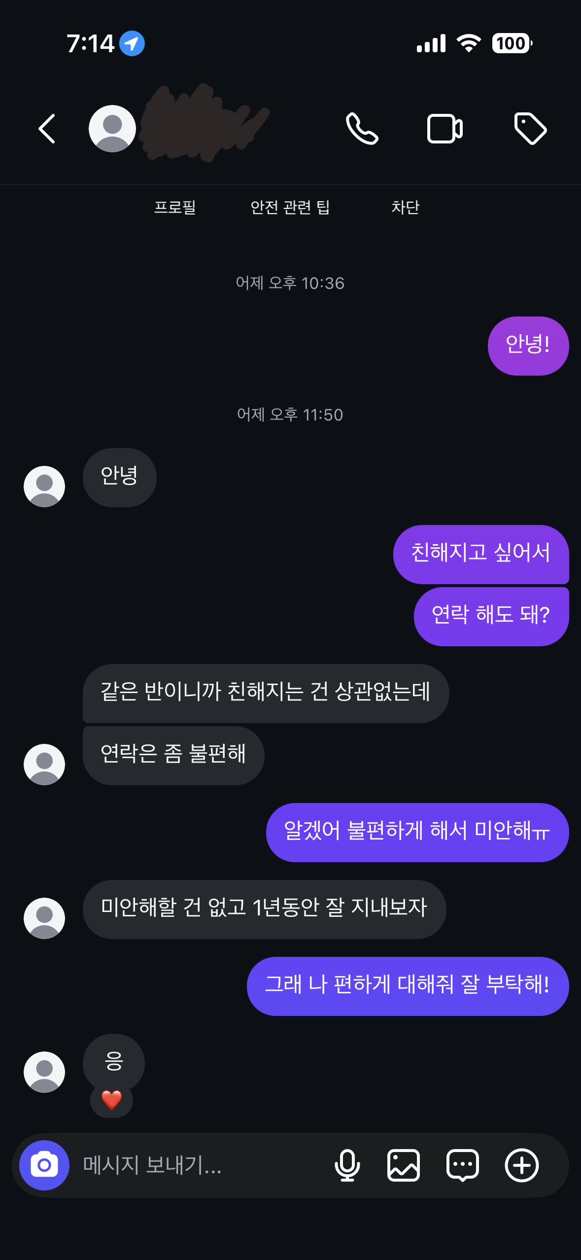 내가 개학하고 같은반이 된 남자애가 있는데 4일정도 밖에 안 됐지만 좋아하게 되어 버렸어 사실 내가 누굴 먼저 좋아해본적도,연락을 먼저 해본적도 처음인데 이렇게 까일거라는 생각도 크게 못하고 보낸건데..저렇게 답장이