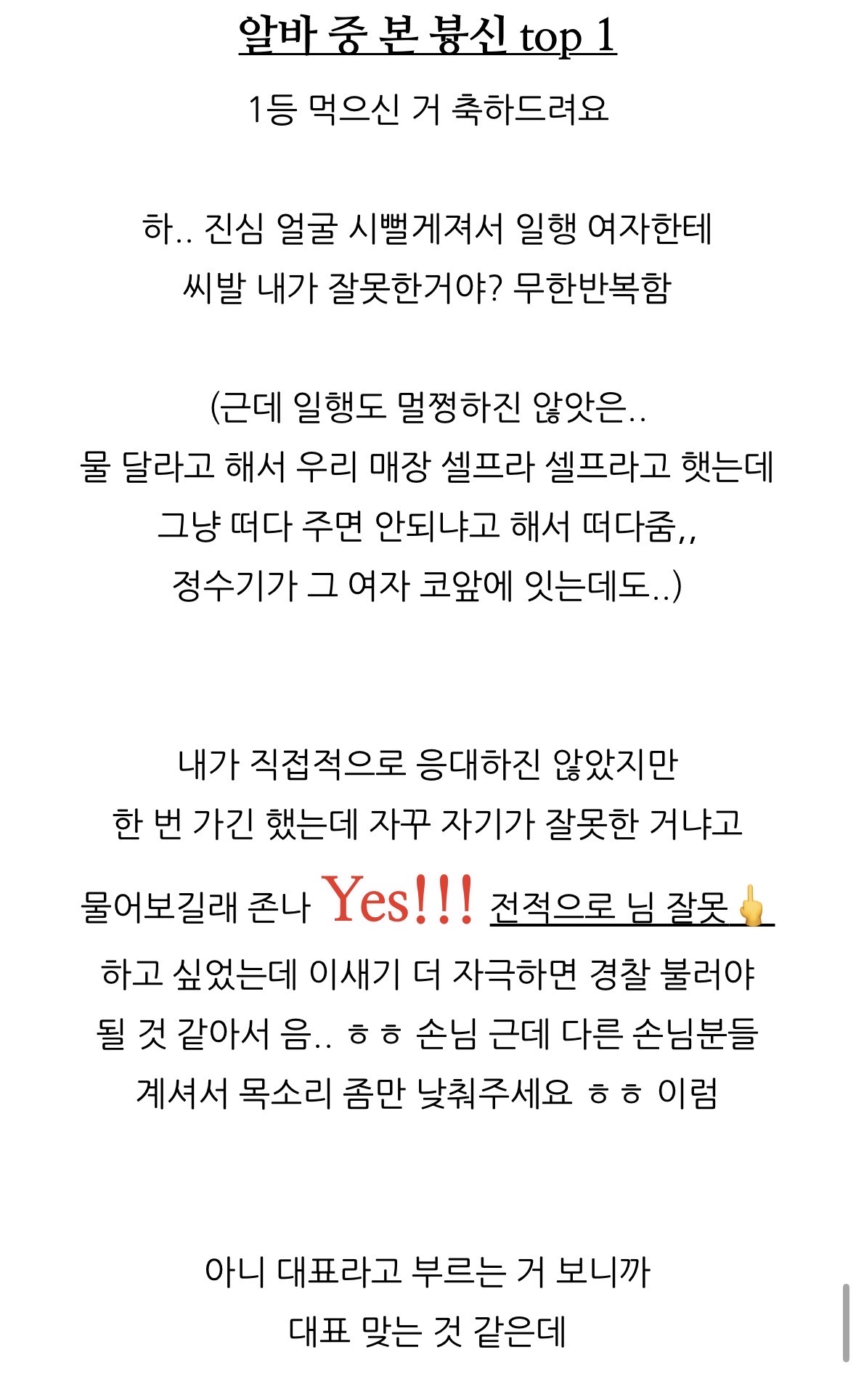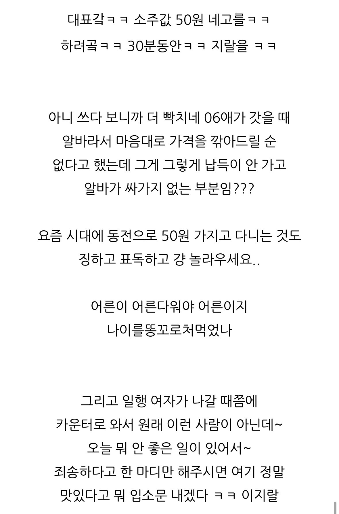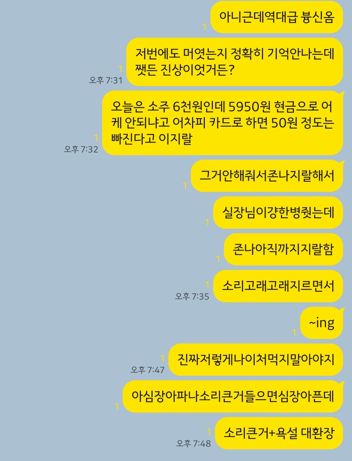 글쓴이@빠른언니1 그치 ㅜㅜ!!!! 저번에 진상짓항것도 생각해보니까 외상 안되냐고 했다가 안된다고 하니까 욕한거엿음.. 세상에 또라이가 너무 많아